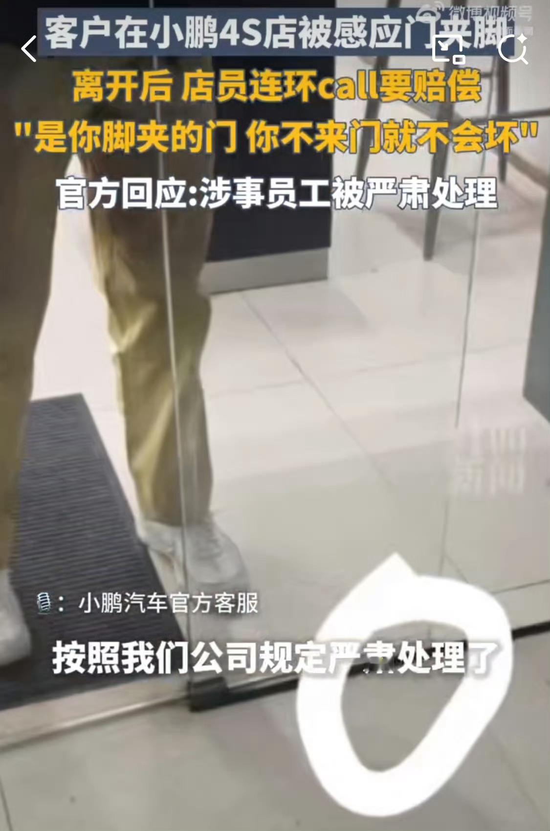 刷到 直接气笑!客户去小鹏4S店试驾,被门夹脚后还被要求赔门,导购的逻辑简直颠倒黑白。客服回应称会加强全国门店培训,涉事员工已严肃处理。 这种服务体验,换谁能接受啊?