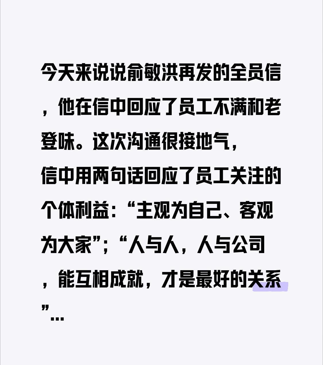 俞敏洪说员工要“主观为自己,客观为大家”。 这话一出,炸锅了。 不是啥大道理,就