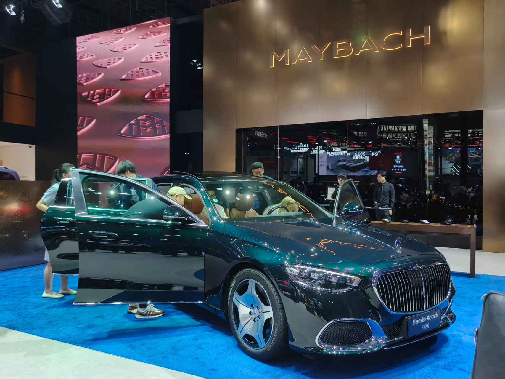 上奔驰展台看了一下,绿色迈巴赫漆面质感确实不错,很深邃,看的人也很多,这届车展保时捷都不来了,再往上的超豪华也是一个都没来,BBA成了车展上传统豪华品牌的顶梁柱。