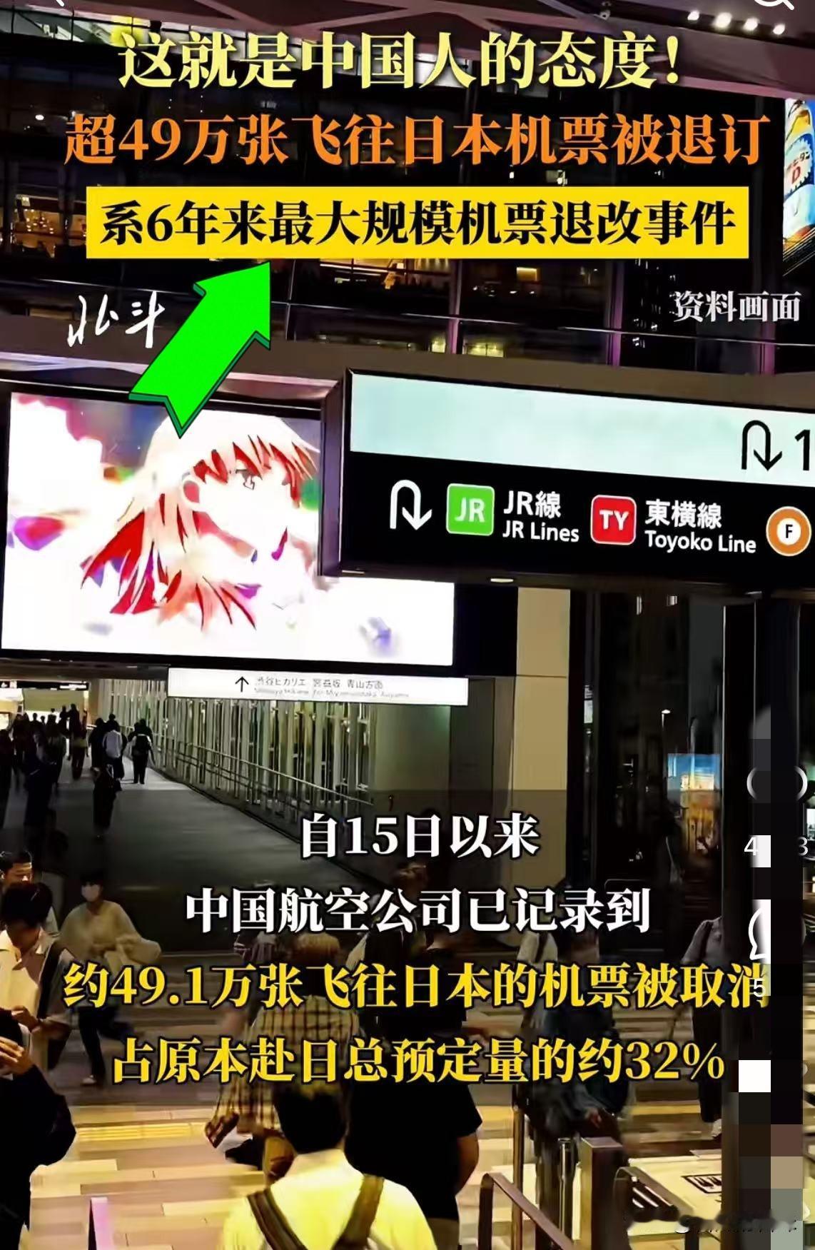 这就是中国人的态度 11月24日,航班管家DAST发布数据,宣布一共有12条中国飞往日本的航线全部航班都被取消,连天津、南京、广州、上海这些大城市飞往日本的航线也大量取消,尤其是12月27日那天,取消率会达到21.6%,创下一个月来的最高纪录。 这件事其实从11月中旬就开始了,当时外交部提醒大家近期不要去日本,主要是担心安全和日本领导人的不当言论,各大航空公司马上跟进,允许免费退票,结果短短几天,退掉的机票就超过50万张。 这场退票潮来得又快又猛,航空分析师们都惊呆了,直呼这是“自2020年初以来最大规模的机票退改事件”。短短两天时间,将近50万张赴日机票被取消,这个数字占到总预订量的近三分之一。 机票取消量甚至是新订票量的27倍,航空公司柜台和订票系统差点被挤爆,社交平台上到处都是网友晒出的退票成功截图,那种果断决绝的态度,分明透着一股“这地方我不去也罢”的坚定。 航班取消的名单越拉越长,天津至大阪、南京至关西、广州至关西,这些曾经热闹的航线如今取消率分别高达65%、59.4%和31.3%。就连上海浦东飞往日本关西的航班也有近三分之一停飞。航空公司们动作整齐划一,国航、东航、南航等十几家航司相继为日本航线推出特殊退改政策,免费退票的善意背后,是市场需求断崖式下跌的冰冷现实。 旅行社们嗅觉最灵敏,赴日旅游产品纷纷下架,不少旅行社直接冻结了赴日团不再收客。往年这时候正火爆的关东、关西赏枫线路,今年突然没了声音。那些标注“不可取消”的日本酒店订单,也在耐心沟通后神奇地实现了全额退款,这股退订浪潮已经远远超出了机票范畴。 日本经济这下可要尝到苦果了。野村综合研究所估算,中国游客大规模流失将导致日本经济损失高达2.2万亿日元,平均每个日本人要承担约1.8万日元。零售和旅游股应声下跌,资生堂、日本航空等上市公司股价大幅下挫。日本商业领袖们坐不住了,急忙与高市早苗会面,敦促其缓和紧张局势,毕竟“政治稳定是经济交流的先决条件”。 这场航班取消潮表面看是商业决策,骨子里却是民心向背的真实写照。当安全问题遇上民族尊严,普通人的选择往往最有力。每一张退掉的机票,每一份取消的订单,都在默默诉说一个事实:国家尊严与个人安全,从来不是可以讨价还价的商品。 各位读者你们怎么看?欢迎在评论区讨论。 国航日本航班