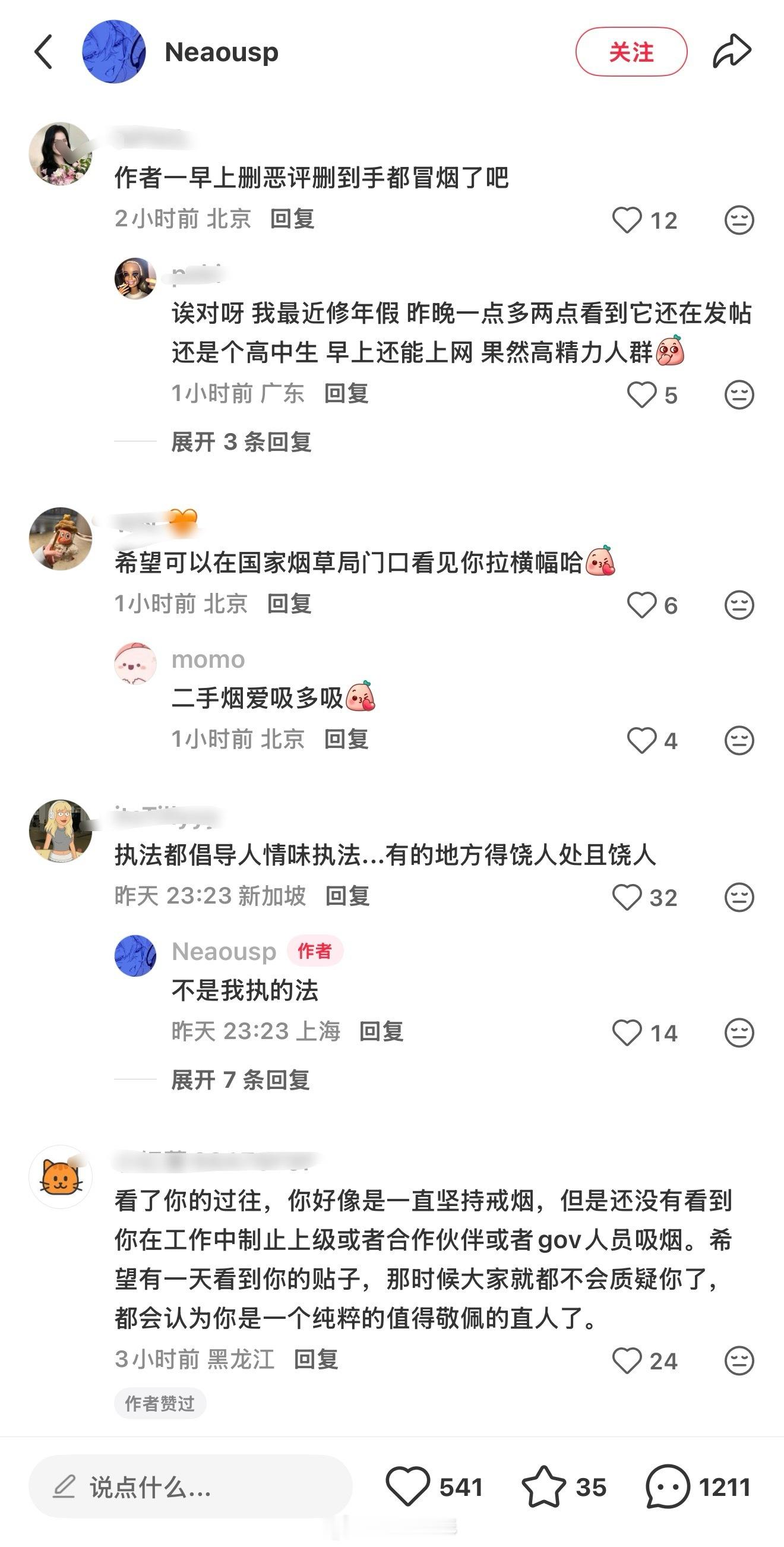 网友投稿,小红书上一博主称投诉上海徐汇区一环卫工人工作时抽烟,使该环卫工受到罚款 50 元和公示批评的处罚。该博主行为导致争议,有网友为其叫好,也有不少人质疑其只会欺负环卫工人。此外,虽然该博主自称男的,但不少网友质疑其明明是女生,为何要说自己是男的。根据该博主过往帖子内容,疑似是高中生,之前分享的内容多是看演唱会,日式料理,各种点心等。但从 11 月初开始,其账号突然出现不少反对抽游烟的内容,并称自己在反对过程中被打,被烟头烫(只有文字描述,没有其他证明),还呼吁公共场合看见老登抽烟就抢过来丢掉。