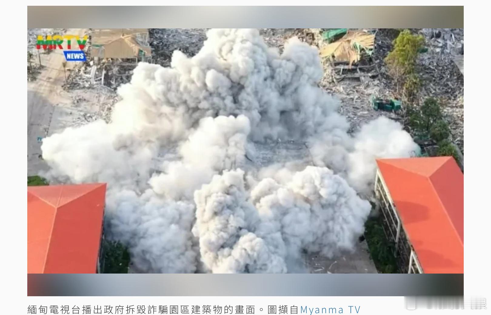 緬甸公布炸毀KK園區建築影片 逾180幢拆毀、超過千名外國人被捕緬甸政府正展開打擊詐騙園區的行動,11月19日公開最新炸毀KK園區建築物的影片,截至11月21日,緬方摧毀逾180幢相關建築物,拘捕逾千名外國人,搜獲大量電腦及手機。路透社報導,在國際社會的壓力下,緬甸軍政府正展開嚴厲打擊詐騙中心的行動,11月18日,緬軍與克倫民族軍(Karen National Army)的士兵開始在邊境城鎮妙瓦底(Myawaddy)周邊行動,該處是詐騙和人口販賣的主要中心點,並有多個匿藏點。緬甸政府隨後稱重視打擊網路詐騙與網路賭博,多個團隊正繼續調查發生在KK園區(位於妙瓦底鎮區一帶)、水溝谷(Shwe Kokko)的犯罪行為,為了防止犯罪活動死灰復燃,政府正出動車輛與炸藥,拆除該些未經准許興建的園區建築。緬甸政府指在KK園區的635幢建築中,截止11月21日下午,182幢已拆毀,剩餘453幢的拆除工作進行中。緬甸也拘捕逾1000名外國人,搜獲逾2,600部電腦及超過2.1萬部手機。