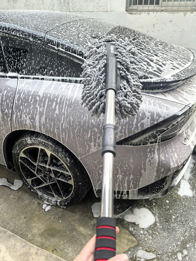 洗完车不拍等于白洗 用某帝金币兑换的拖把刷完车,再喷个液体蜡,就算天气不好,车漆也是锃亮的,能反射出周围的环境。