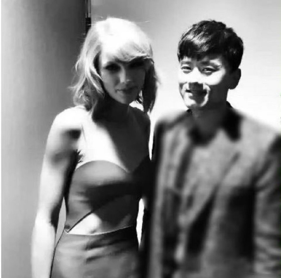 “张杰14年去全美拿奖时,与霉霉的合影,好难得的一张老照片。” 没想到他们还有合照