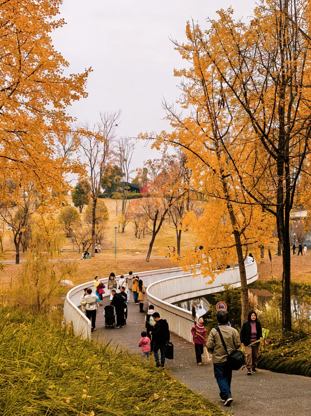 我就是有办法让你们开心 一张图证明你在枫叶国 最近的天府公园秋色杀疯了 周末人巨多,很多遛娃还有打卡拍照的 19号线天府商务区F口或者6号线秦皇寺站都可以到,拍照这个位置导航20号足球场,靠近秋月桥 可以租车50/h。