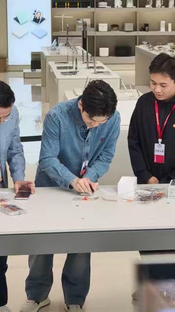 11月24日,樊振东在小米深圳之家为幸运顾客亲自贴膜,手法专业。