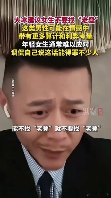 你身边有没有女生被成熟男人的算计式温柔坑过? 东北话里的“老登”不是年龄大,是活了半辈子、习惯权衡利弊的男性,大冰写过《乖,摸摸头》,最懂江湖里的真心和算计。 他说“我比你大,能替你拿主意”,转头翻你手机账单说“你乱花我钱”; 他说“想和你稳定”,逼你辞掉异地好工作,美其名曰“为我们未来打算”; 连你爱吃番茄炒蛋都记不住,却能精准算出和你恋爱每月要花多少钱。 有人说我老公大我5岁,连我姨妈期的姜茶都提前熬好半小时; 也有人说我闺蜜栽了,他说“我养你”,结果房租都要AA,奶茶钱都算得清。 大冰反对的不是年龄差,而是要打破“年龄=成熟”的滤镜, 对你的好是想把你当小朋友宠,还是把你当划算的合伙人,年轻女生得拎清。 你觉得找对象时,怎么分辨是真成熟还是假算计?聊聊你见过的套路~