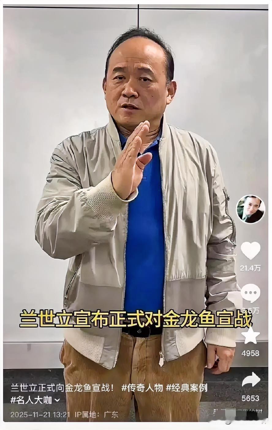 兰世立对金龙鱼的战斗已经胜利了! 尽管资本大鳄下架封杀了很多自媒体,不断在头版推送兰世立的道歉消息,但网友们几乎一边倒的评论,让金龙鱼的口碑日趋冰点化。 兰世立打赢了对金龙鱼的这场战斗。 原本以为金龙鱼会凭借资本的力量封杀兰世立及其自媒体,但没想到金龙鱼会如此厚脸皮,不仅疯狂封杀各大自媒体,还主动联系头部自媒体,推送金龙鱼道歉广告,试图挽回网友的抵制。 但令人没想到的是,金龙鱼这份道歉广告,竟然没有一个网友买账,评论几乎一致抵制金龙鱼,导致金龙鱼这品牌的口碑一下子跌到了谷底。 金龙鱼的股价也开始不走寻常路,明显下行。 11月20日,金龙鱼跌了2.84%; 11月21日,金龙鱼又跌了2.92%。 到现在今年金龙鱼已经累计跌幅6.89%,而近5个交易日,金龙鱼更是跌了8.05%。 网友的抵制声浪让金龙鱼感到恐慌,就像当年网友抵制家乐福一样。 但不同的是,兰世立代表的是底层发声,他没有代表任何组织,也没有任何资本背景,他只是一个发声勇敢的人,一个为捍卫国人利益而发声的人。 虽然他的发声无疑是悲壮的,但却展现出了英雄气概。 家里催婚怎么破,在线等,挺急的 高市早苗G20会场中小动作不断