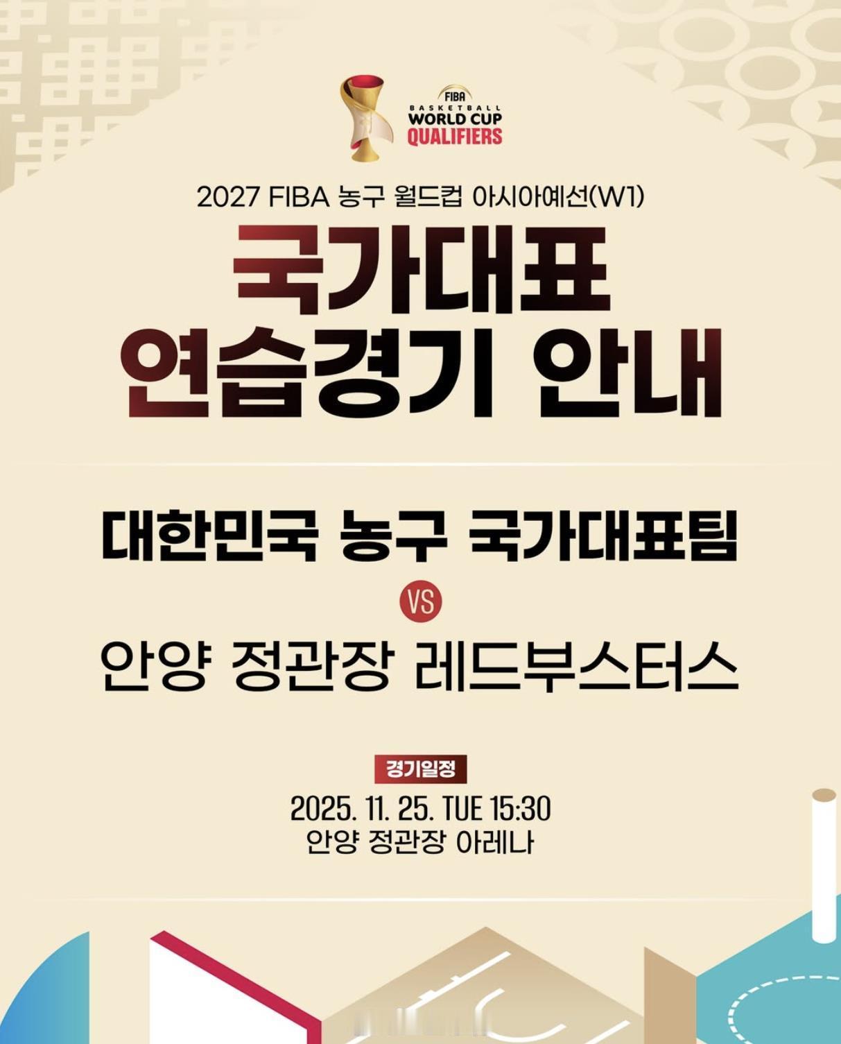韩国男篮宣布25日下午与安阳进行一场练习赛,球迷可以进去看的。 本次窗口期12人的号码也确定。