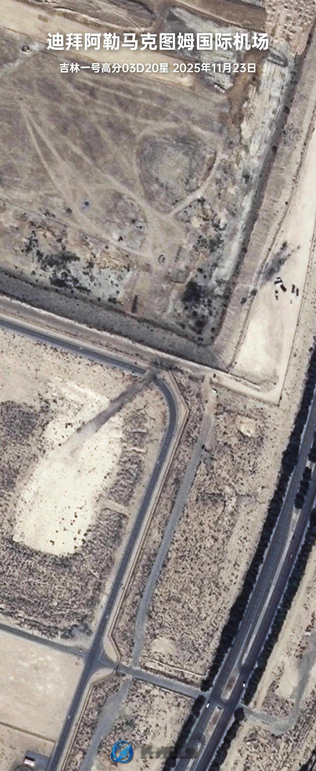 【吉林一号视角看“光辉”战机坠毁后痕迹】吉林一号03D20星11月23日拍摄的迪拜航展影像,从影像清晰看到印度国产战机“光辉”坠毁后留下的痕迹。