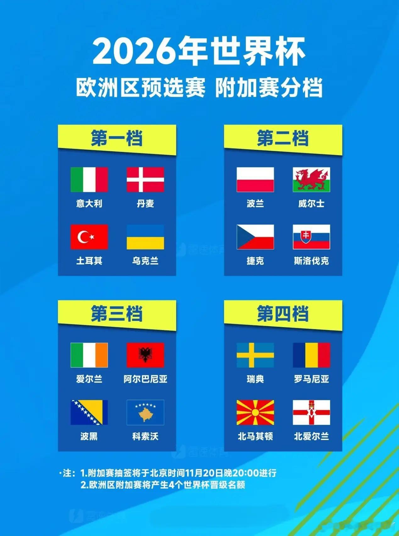 世欧预附加赛名单全部出炉,16队将争夺4个世界杯正赛名额