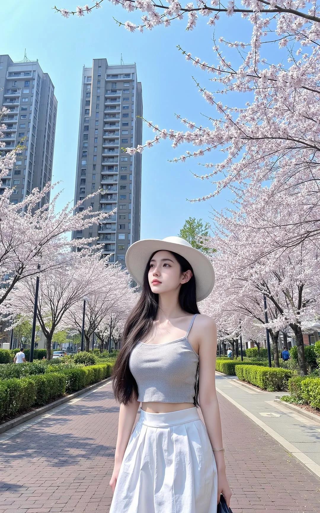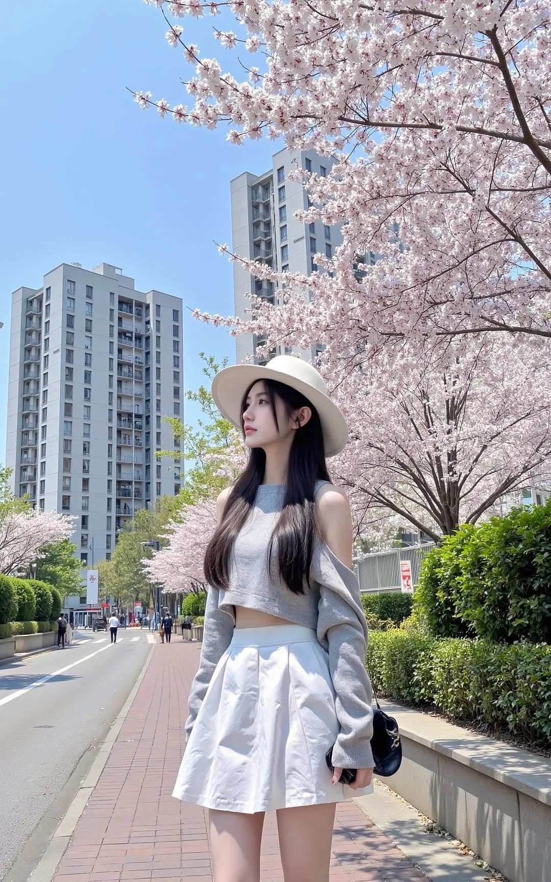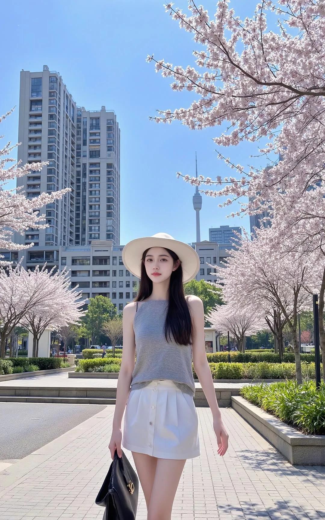樱花树下,优雅漫步,春日穿搭指南