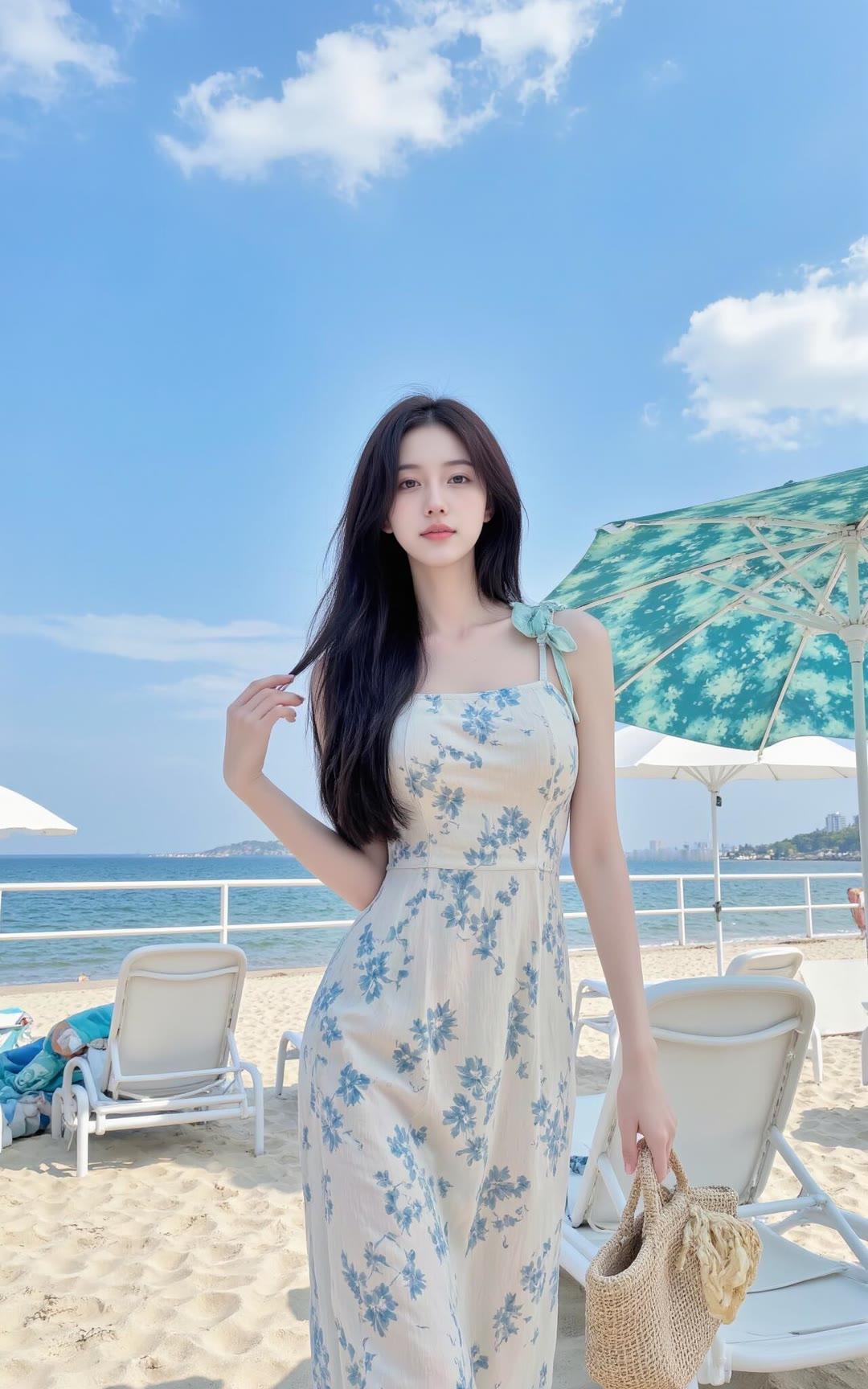 都市街拍,时尚少女,花裙搭配,城市风情