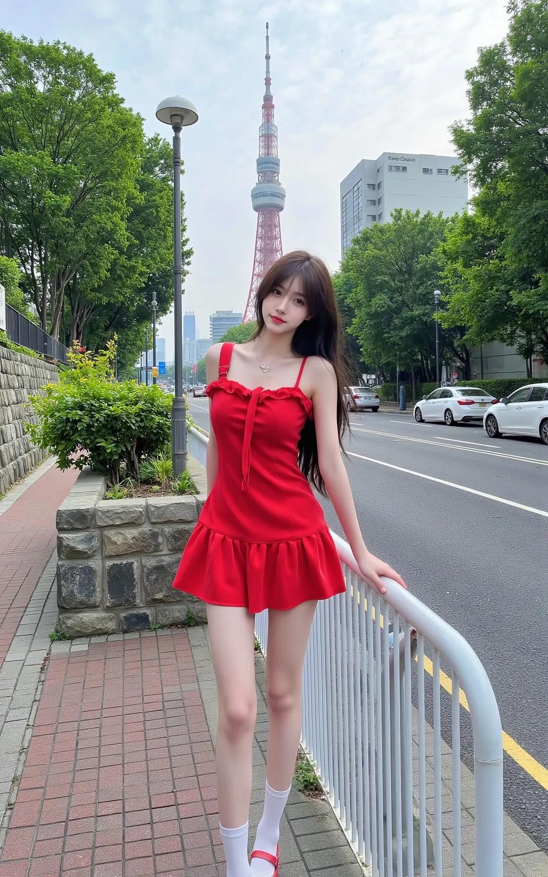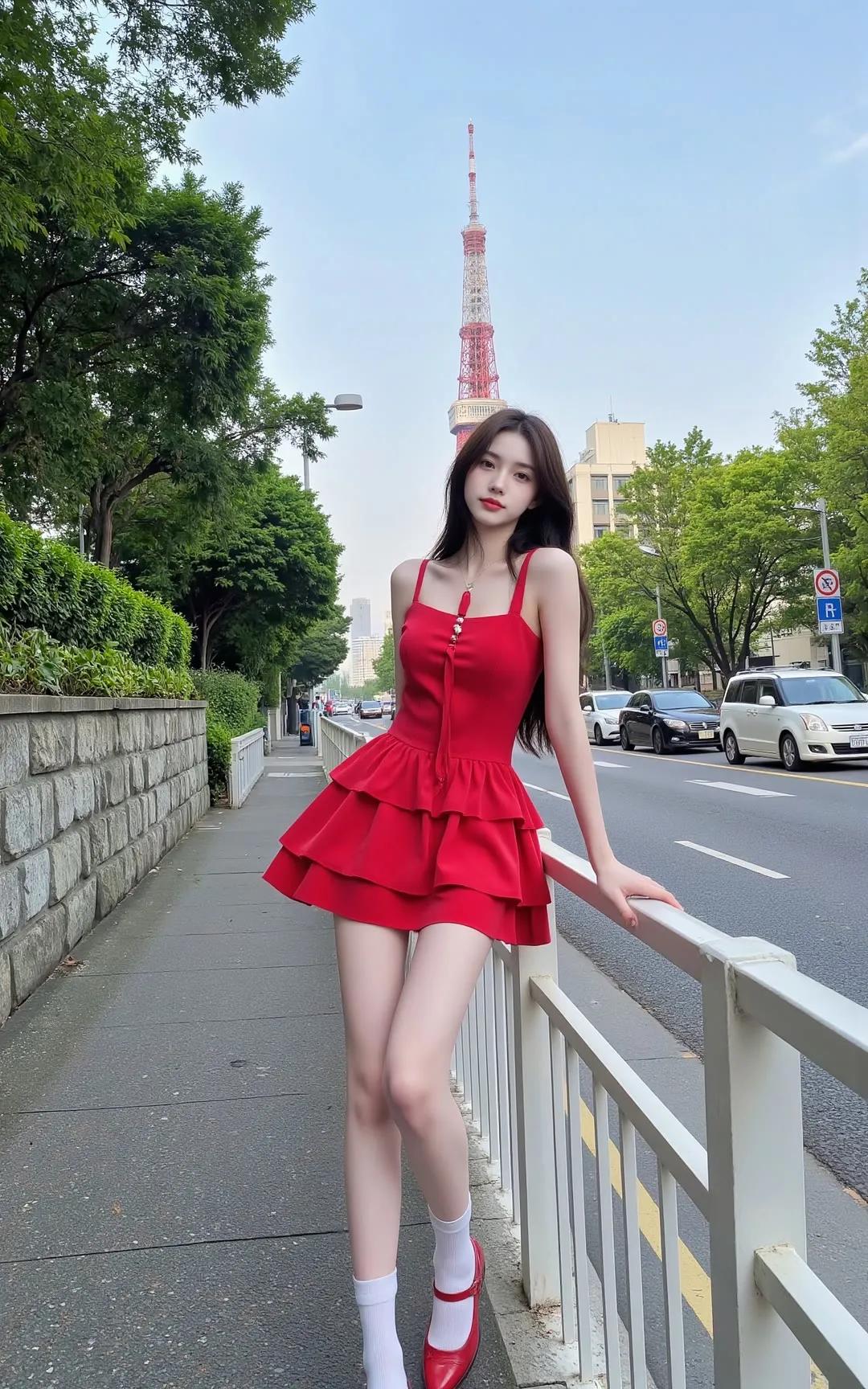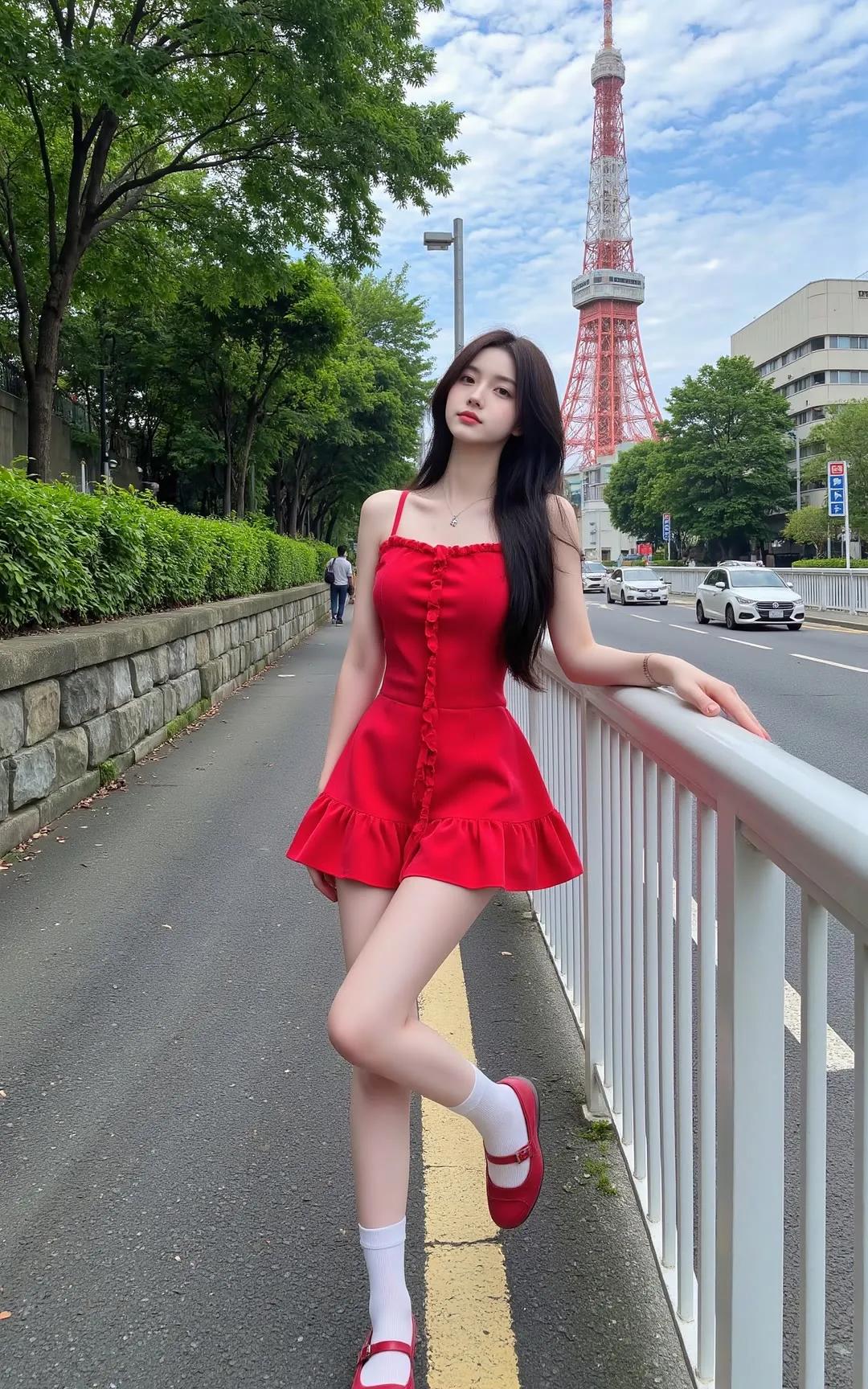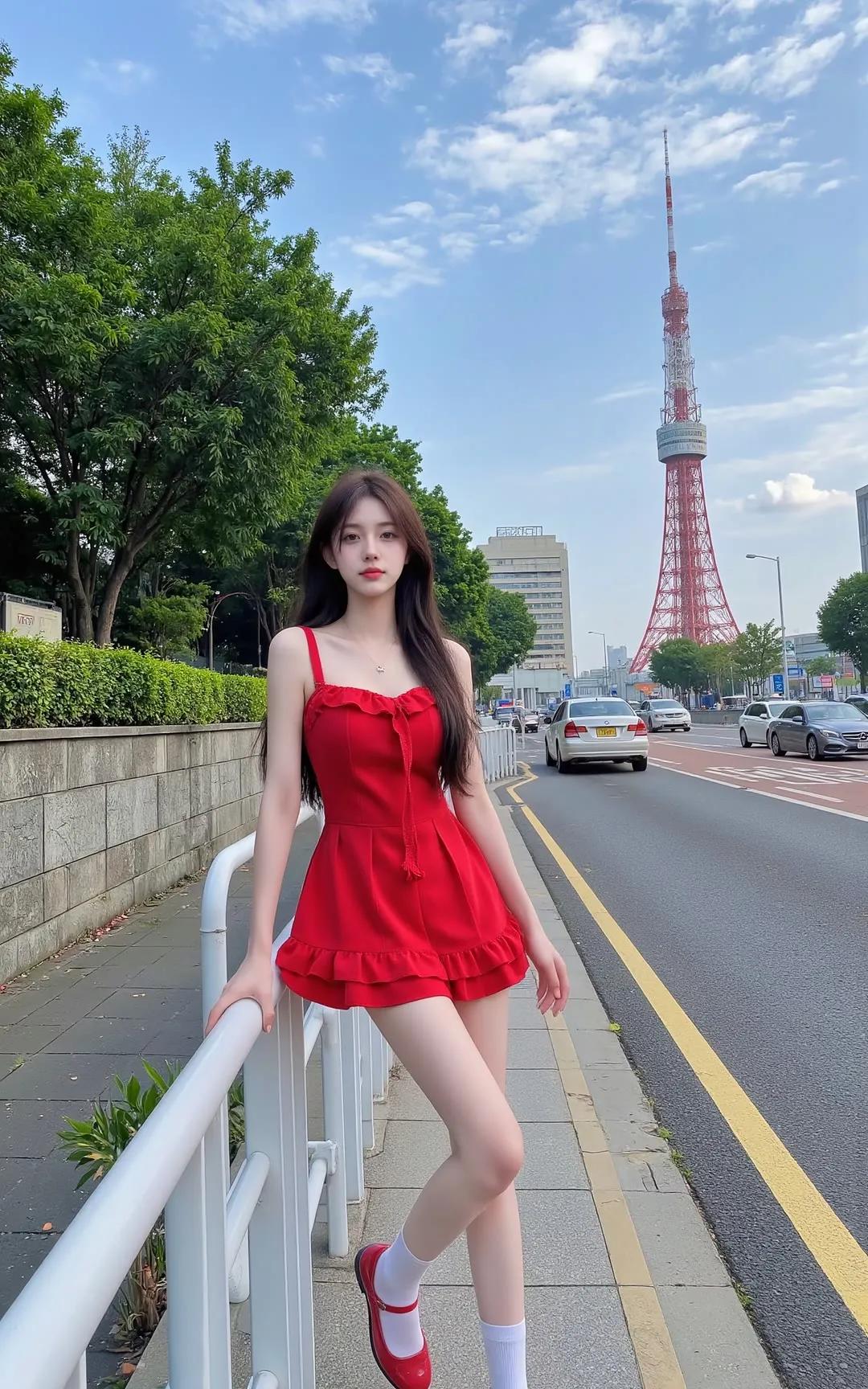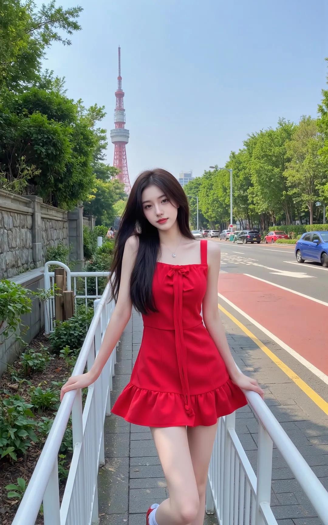 在热闹的街头,一个穿着红色连衣裙的女孩格外亮眼。那红裙像是燃烧的火焰,在人群中肆意跳跃。她迈着轻盈的步伐,长发随风飘动,每一步都带着自信与优雅。