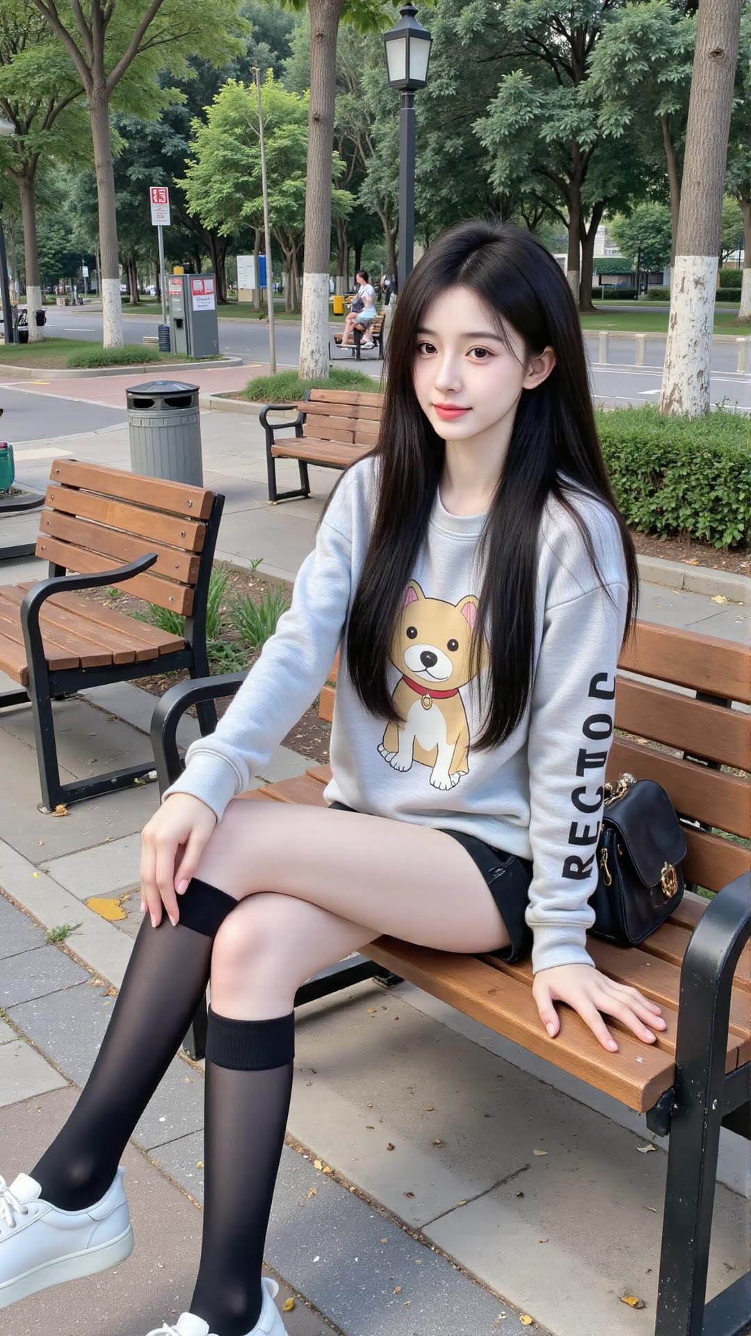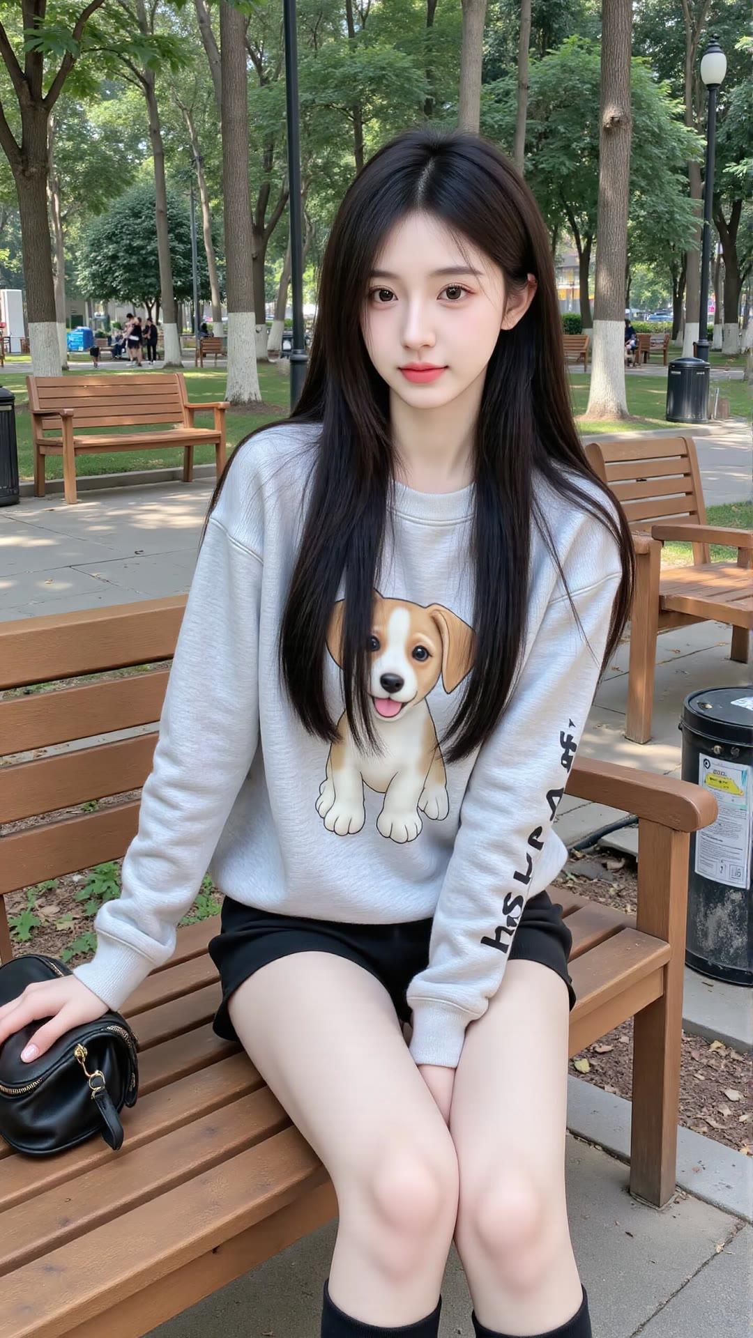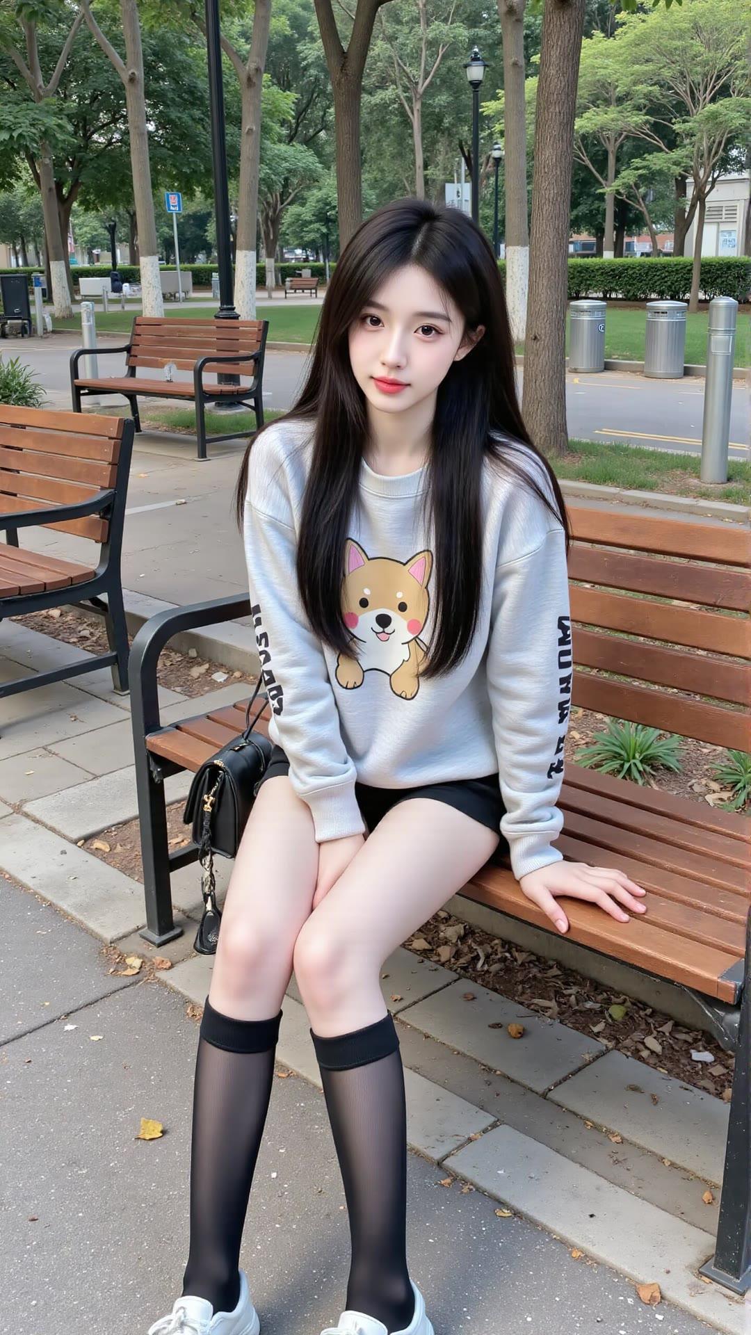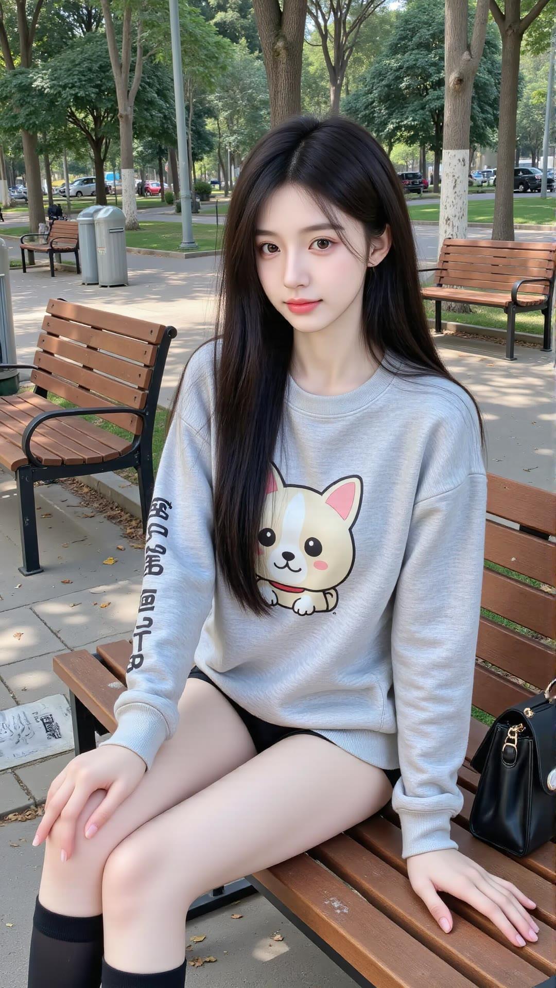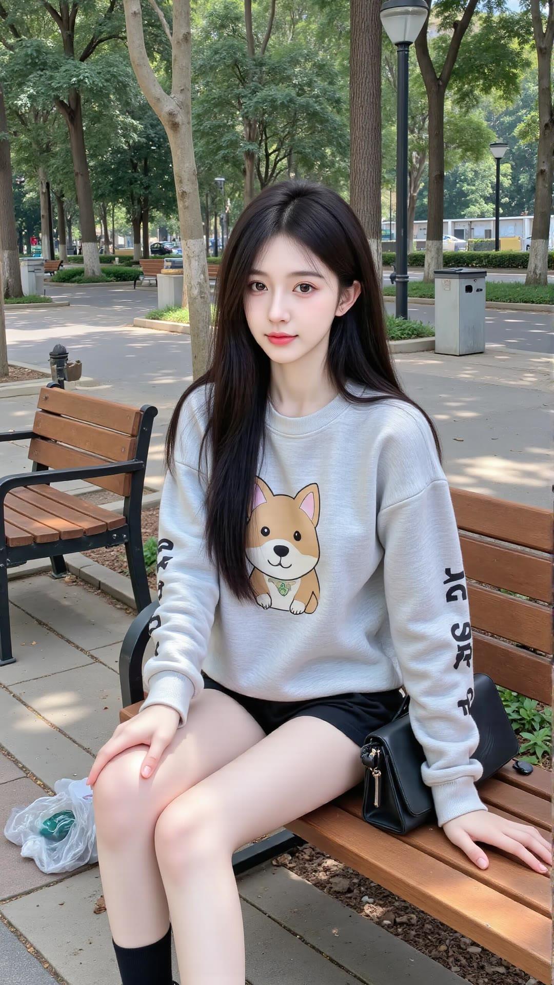 元气少女在公园长椅上,微笑面对镜头🌞🌳👩❤️💋👩