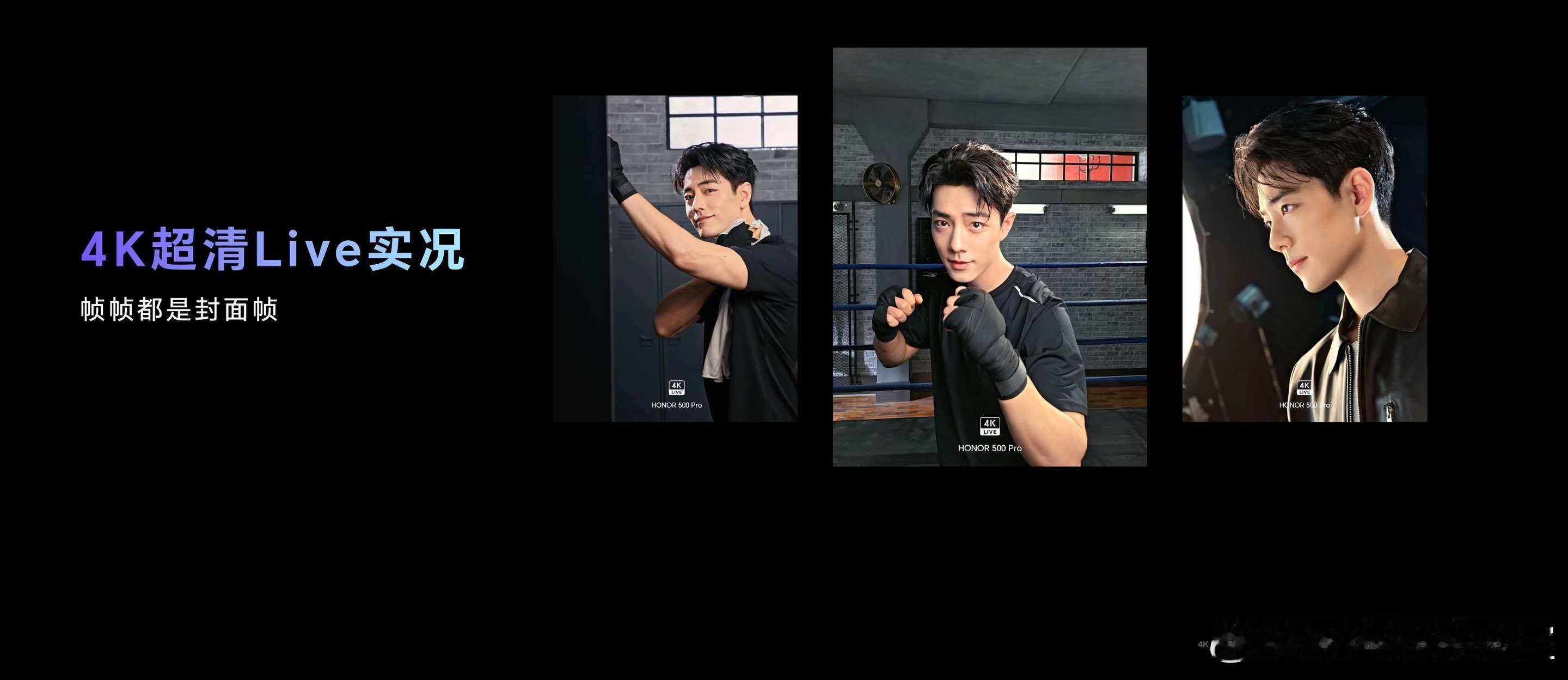 系列带来档位最全实况体验,首发行业唯一前后置Live人像美颜&虚化,既能还原美貌,又带来“帧帧主角”的虚化效果,加上6款胶片色彩算法,随手拍出电影感。 荣耀500系列还带来超多Live玩法,行业领先“破框而出”Live特效,一拍二消三出框。裸眼3D”朋友圈轻松实现,Live路人一键消除。4K视频转Live功能也让分享更加便捷多样,4k Live高质朋友圈轻松搞定。 此外,荣耀500系列更化身“随身修图师”,支持YOYO一语暗光增强、一语贴纸合拍等功能,玩法多样,趣味翻倍。