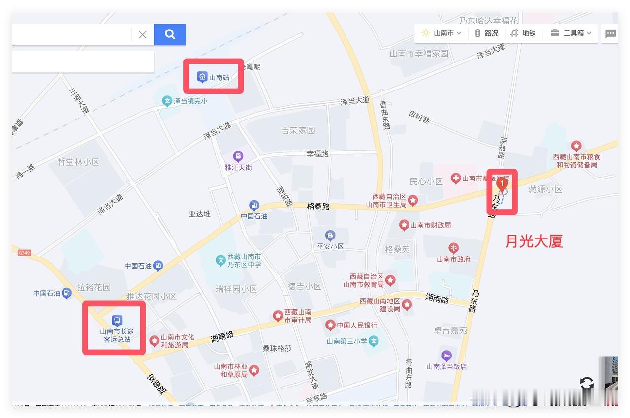 西藏的山南市区及郊区,主要有三个旅游景点:1,桑耶寺,这个比较远,上午8点在月光大厦坐车过去,下午2点半坐车回到月光大厦。2,公交车2号线的昌珠寺和雍布拉康,这个可以关注山南公交的实时公交车动态,一切都在掌握中。 山南市区,3个主要的地标,山南火车站,山南汽车客运站,月光大厦……大概就是这样呢! 总体来说,山南市区的公交车线路,不是那么的顺畅和便捷,好像有点绕来绕去,效率可能有点低吧?! 怎么讲呢?!山南市区好像没有共享自行车,没有共享电动自行车……没有共享单车……所以……好像山南市区打网约车的价格不太便宜吧?! 大家觉得呢?!
