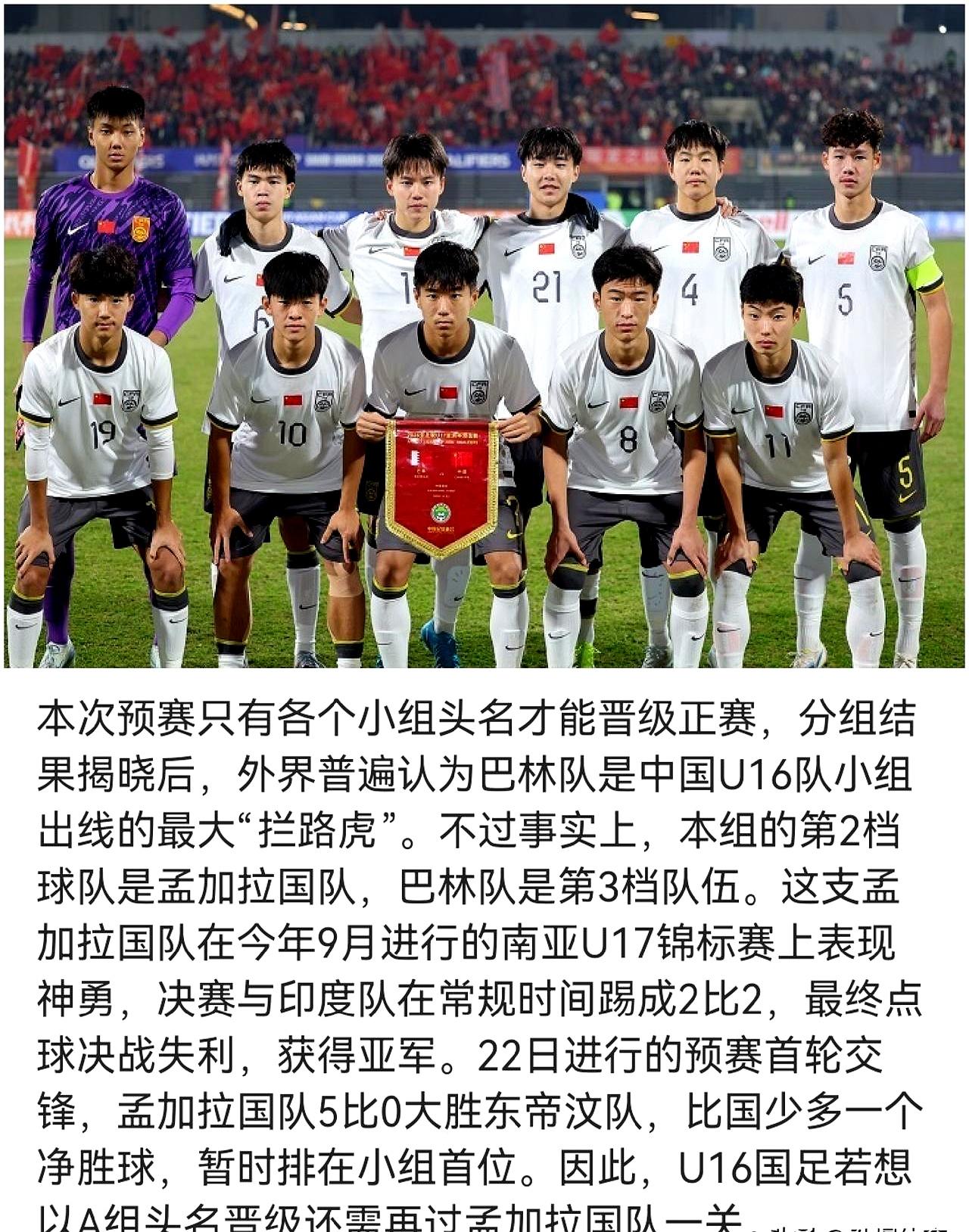 国少4-0大胜巴林,这开门红漂亮!正当大伙都以为这小组稳了的时候,一看积分榜,嘿,咱们居然才排第二! 没想到吧?头名是孟加拉国!人家上来就是个5-0,净胜球直接压了我们一头。 有媒体就说了,别小看这支孟加拉国,他们才是这组里藏着的“真家伙”,是正儿八经的第二档球队。之前都盯着巴林,结果真正的拦路虎是它! 这下悬念直接拉满了,想拿小组头名,下一场就是硬仗。不过这届国少确实有股劲儿,期待他们能正常发挥,把这块硬骨头啃下来!小伙子们加油!