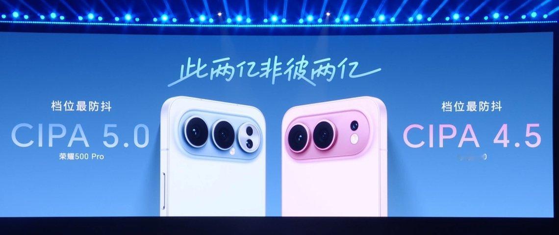 荣耀 500 全系 2 亿主摄,1/1.4 英寸大底传感器,荣耀500Pro 主摄防抖能力 CIPA 5.0 级,荣耀500 主摄防抖能力 CIPA 4.5级,口袋微微单