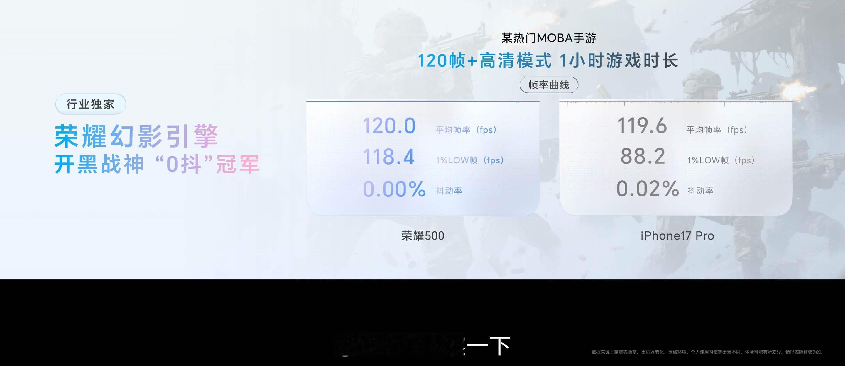 荣耀500系列全新升级荣耀幻影引擎3.0,利用AI技术对游戏的痛点卡顿场景进行精准预测和渲染优化,带来满帧游戏表现,让每一位玩家都能尽享旗舰级游戏体验。