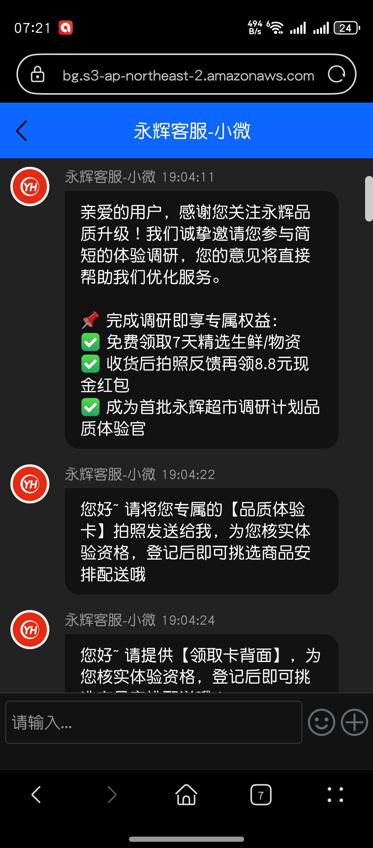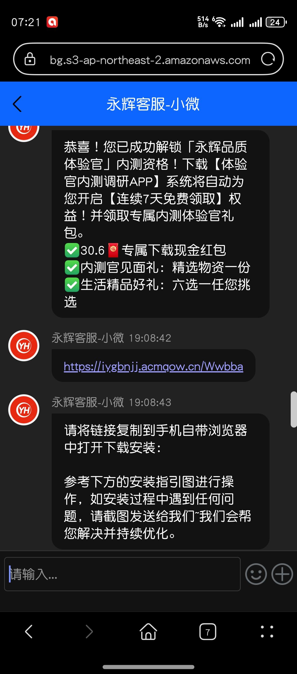 原本以为遇到了骗子,但见到到手的东西,开始怀疑是骗子太舍得下本,还是我多疑了?红包9.9是真给,选择的商品也是真到货了。如果过程再逼真点,我就信了。 骗子先是冒充永辉超市,说是找体验官,免费领取商品,宣传册做的也用心,挂在门把手上。原本是好奇骗子会怎么骗,就扫码进入一个聊天室,(这是第一个疑点,永辉超市好歹也是个大超市,真要搞这个事情不弄一个自己的APP或者公众号?) 让你选择宣传册里想要的商品,提供联系方式,收货地址,然后给你个链接,让你下载一个安卓应用(这么大个超市,开发的应用不能在手机应用商店里下载)然后注册,登陆,又是跟你说,提交信息,安排明天的商品。因为心里有预警,所以提防着这个APP索要系统权限的通知。所以当手机初中弹框,要我授权APP访问文件的权限,我就直接退出,卸载。 等我认为事情到此结束的时候,外卖小哥的电话来了,选择的抽纸真到了,一点不打折。看到抽纸我已经开始怀疑自己是不是多疑了。好在灵机一动问了一下外卖小哥,你是不是从永辉超市来的? 小哥一脸懵,马上跟我核对信息,怕送错了,我也一脸懵,怎么不是从永辉超市取的?特意让小哥截图他们闪送信息给我,确实不是从永辉超市取的。这就是逻辑上的错误。所以这个事情就此打住,就当遇见好人了。