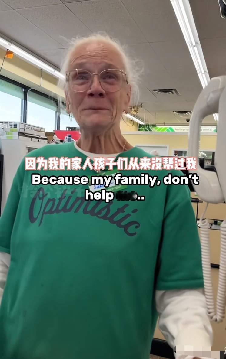 75岁收银员奶奶的眼泪:有些温暖,亲儿女给不了陌生人却给了! 刷到这个视频时,心里一下就揪紧了——75岁的老奶奶还在当收银员,两年只休息过一天,竟只是因为没钱生活、被房东赶出家门。 有人问她为啥这么大年纪还拼,她的回答让人心酸:四个亲生孩子没一个帮衬,日子只能自己扛。可当中国朋友递上鲜花时,她突然落泪,说自己只送过花给老板,从没收到过这样的温柔。 接过朋友递来的钱,她的手止不住颤抖,说陌生人比亲人还亲,连拥抱都是久违的温暖。这世上最扎心的不是艰难,而是至亲的冷漠;最治愈的也从不是巨款,而是陌生人的一点善意。