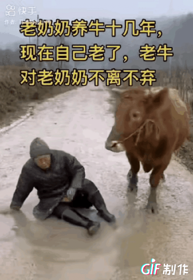 都说牛是来报恩的,还真有点道理! 老奶奶牵着自家的牛走在乡村公路上,刚下过雨的路面湿滑难行,她一不小心跌坐在了地上。 这段路本就人迹罕至,此刻更是连过往的车辆和行人都没有。老奶奶试着挣扎了好几次,却始终没能站起身来。 一旁的老牛见状,不停地围着她转圈,显得焦躁不安。突然,它慢慢走近老奶奶,前腿缓缓跪下,还顺势俯下了牛头。老奶奶立刻抓住牛角,借着牛的力量稳稳站了起来。 常听人说牛通人性、懂得报恩,亲眼看到这一幕,真的由不得人不信。 动物行为学研究显示,牛的智商相当于4-7岁儿童,能识别主人情绪,记住长期照料自己的人。 农村里不少老牛会主动配合农活、保护主人,这类“通人性”的案例,本质是长期相处形成的信任与默契。 很多人觉得动物没有情感,其实它们的感恩更直接纯粹,不带任何功利心。 万物皆有灵,付出真心总会有回应。人与动物的温情,藏在日复一日的陪伴里,这份纯粹的善意,比很多复杂的人情更动人!
