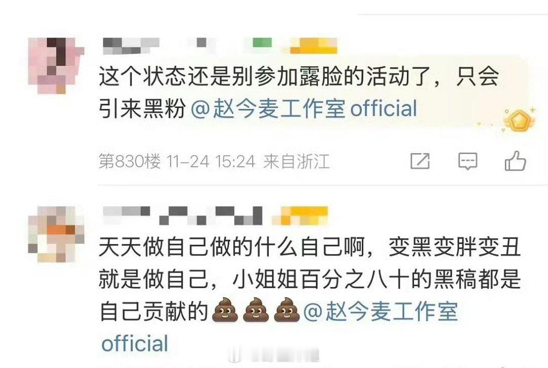 赵今麦的粉丝对于赵今麦出席各种活动的妆造,都表示非常的不满意,要仪态没有,要妆造也没有,都在喊话赵今麦工作室整改,你咋看呢?