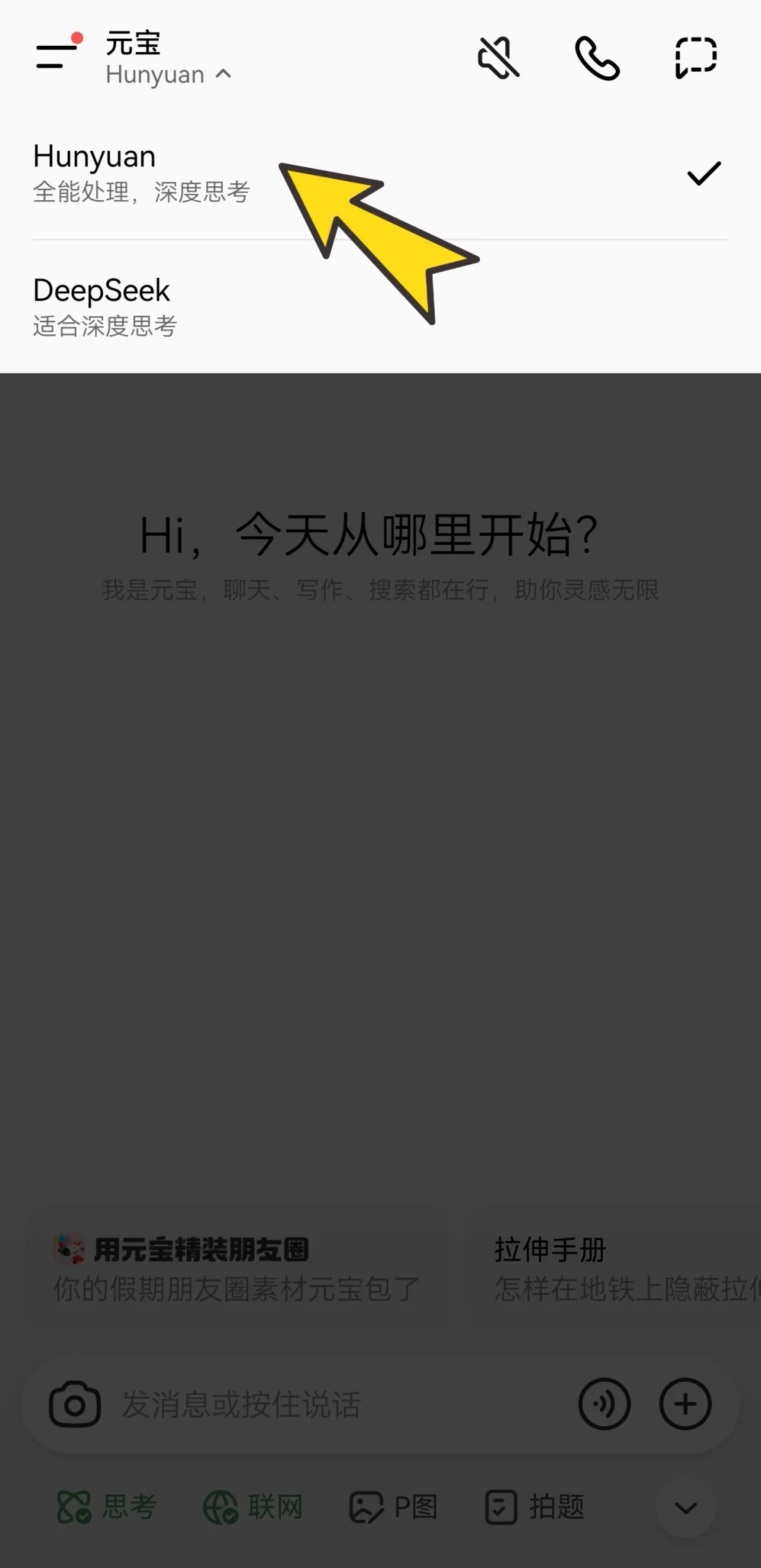 1️⃣打开腾讯元宝,切换成“hunyuan”模型