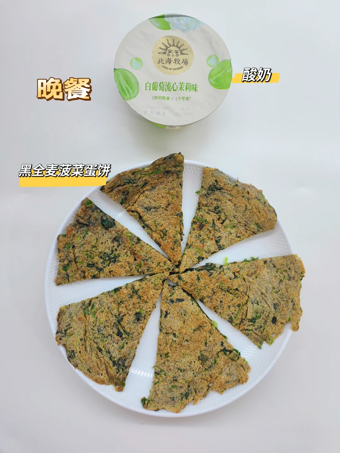 晚餐用了 100克菠菜➕50g黑全麦粉➕两个鸡蛋做的少油煎饼,墨墨也是吃的很香,带不挑食的娃减肥真轻松。