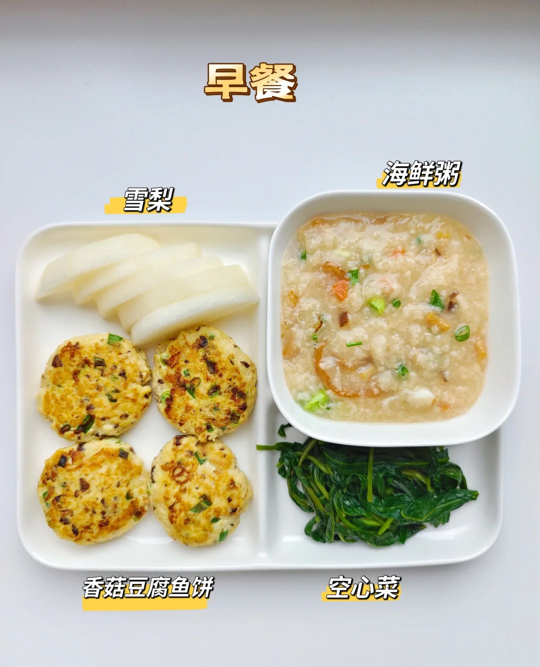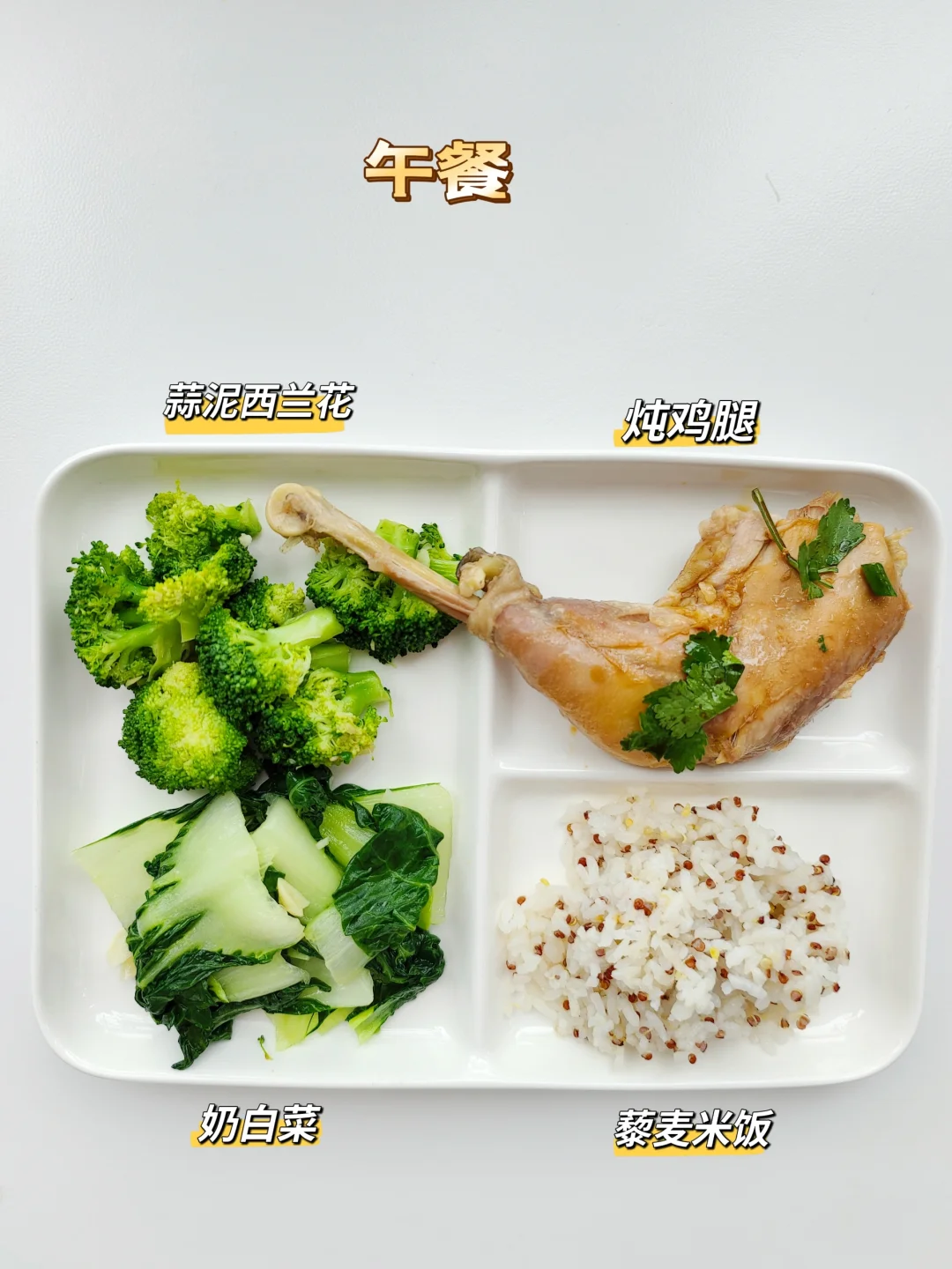 图片上两份餐食的是墨墨和妈妈每人一份,为了激励墨墨顺利减肥,妈妈和他一起减肥,一起分餐吃饭,一起做快乐的减肥搭子。
