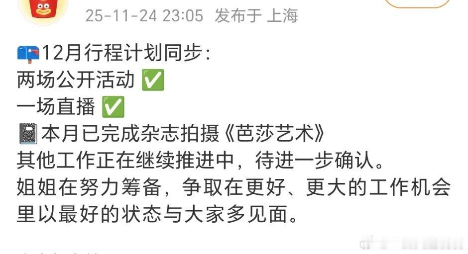 👃🏻下月行程 :一本杂志,三个活动,没说进组的事
