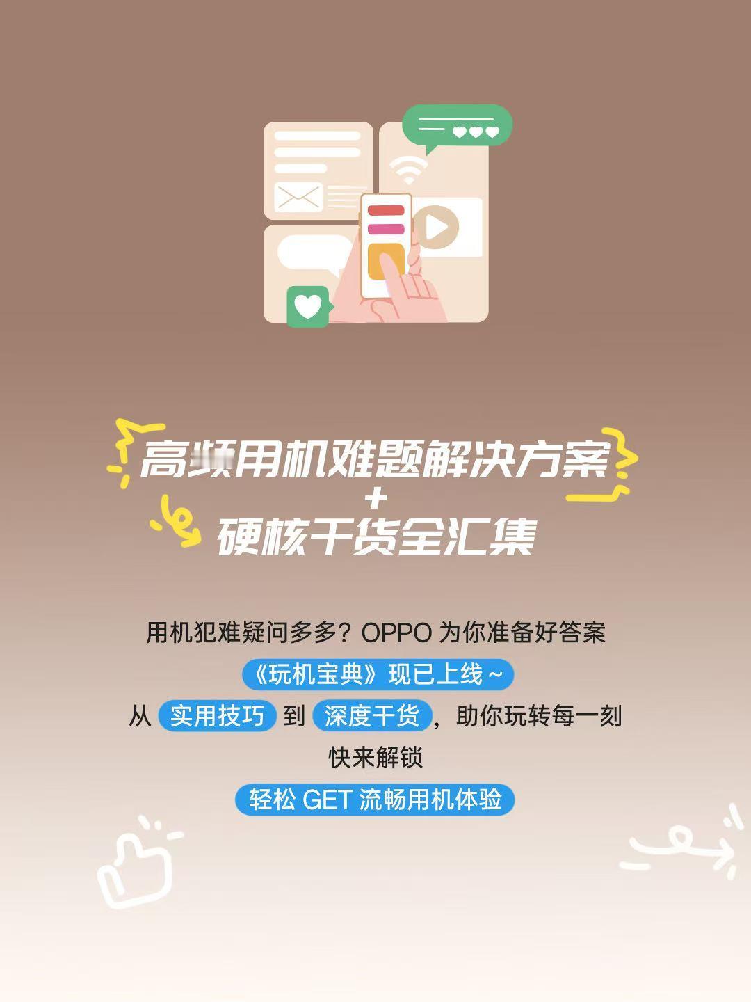 OPPO 不愧是年轻人喜欢的品牌,用户用机痛点研究得很透。这次特别推出的《OPPO玩机宝典》,就是为大家日常用机最容易遇到的高频问题准备的一本实用指南。里面的内容涵盖性能续航优化、网络连接稳定、隐藏玩法探索等主题。从手机卡了怎么快速处理、网络不稳怎么设置更顺,再到想提升续航哪些功能可以关、哪些小功能能让使用更省心……玩机宝典都给出了清晰指导,不用自己到处搜攻略。还有OPPO官方售后通道“全家桶”也很给力,售后服务贴心有温度,全方面为用户保驾护航。大家日常有用机问题也可以去售后找专业团队给解决~Pro