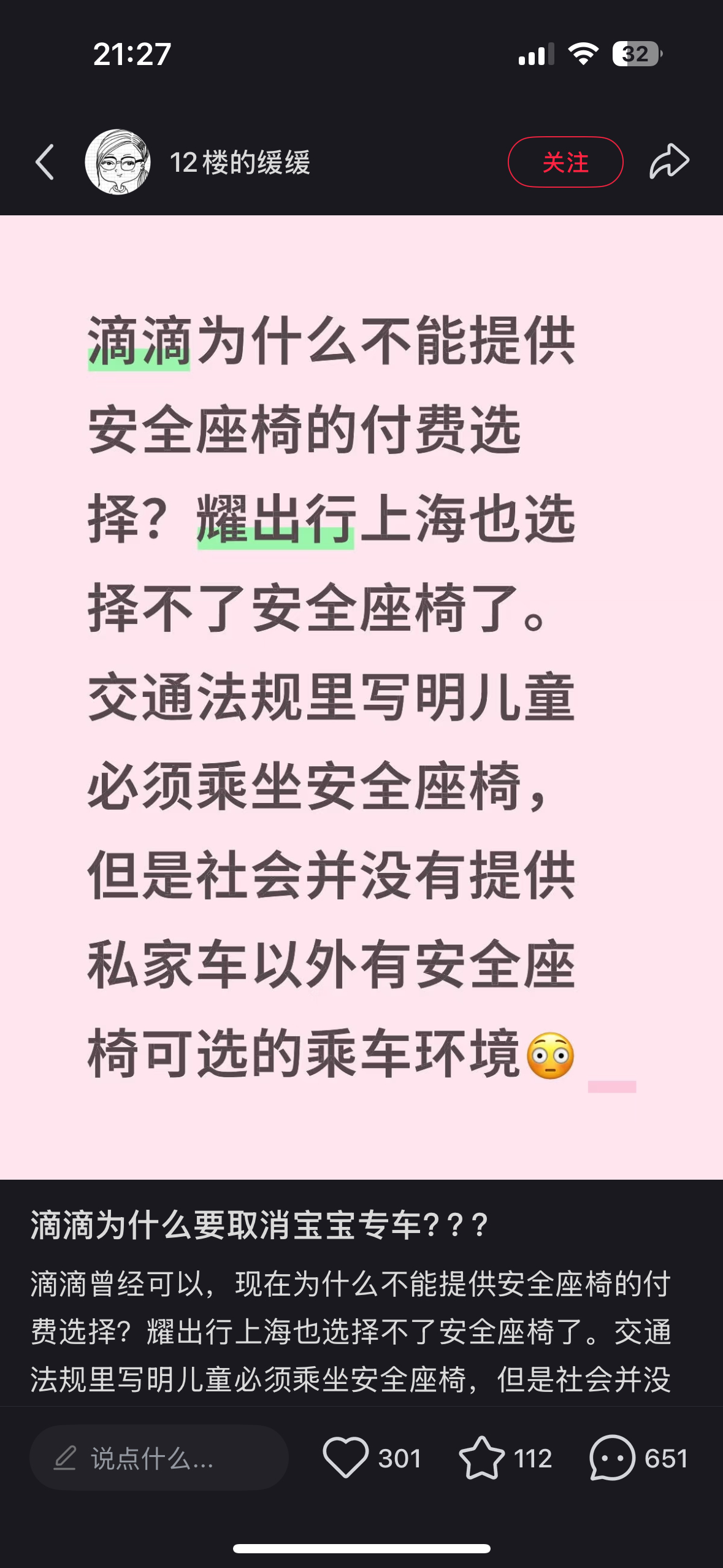 我们的汽车行业很卷可交通安全意识太差了…就拿安全座椅来说,距离家家普及太远前几天落地广州,我本来不想麻烦借车结果滴滴专车、豪华车、耀出行挨个问了,都没有安全座椅的服务,全部没有…也就是说,如果你带娃出去玩,娃只能抱着我们交规里写明儿童必须乘坐安全座椅但社会并没有提供私家车以外有安全座椅可选的乘车环境