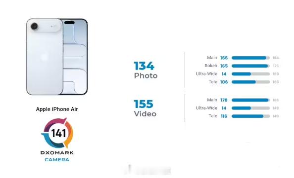 【:画质优秀但受限于单摄】DXOMARK 上周五公布了对苹果 iPhone Air 的影像测评结果。DXOMARK 表示,iPhone Air 的拍摄表现稳定,在曝光、色彩和视频防抖方面成绩亮眼,但由于缺少长焦与超广角镜头,其最终仅有 141 分,位列全球第 41 名。硬件方面,苹果 iPhone Air 仅采用了一颗 4800 万像素主摄(1/1.56″,1.0µm、26mm f/1.6),支持双像素自动对焦与传感器位移式防抖。从成像结果看,这款设备能提供准确的目标曝光和宽广的动态范围,在多数环境下具备自然的色彩表现,亮光条件下细节与噪点控制均衡,夜拍曝光与细节也保持良好。同时,视频模式的防抖效果非常突出,可获得流畅的画面。不过,缺少多摄配置是 iPhone Air 硬伤。与配备三摄系统的 iPhone 17 Pro 相比,它在拍摄灵活性方面明显不足,尤其在与同级别竞品(注:如配备超广角镜头的三星 Galaxy S25 Edge)对比时劣势更加明显。在拍摄高对比场景时,画面偶尔会出现曝光不足,而由于景深较浅,群体合照中的后排人物容易失焦。人像模式下也可见轻微的曝光、细节和背景分割误差。DXOMARK 指出,iPhone Air 的照片画质与 iPhone 17 Pro 主摄接近,日间细节良好、噪点低,但在弱光条件下仍略逊于 Pro。此外,其相机在拍照时对焦速度稍慢,视频录制中偶见轻微的拉焦现象,并伴随一些曝光与白平衡不稳定。在视频方面,iPhone Air 支持最高 4K 60fps 和 1080p 240fps。DXOMARK 测试以 4K/60fps HDR 为主,画面具有宽动态范围与鲜明色彩,同时保持良好的纹理与噪点平衡,整体画质表现强劲。(IT之家)