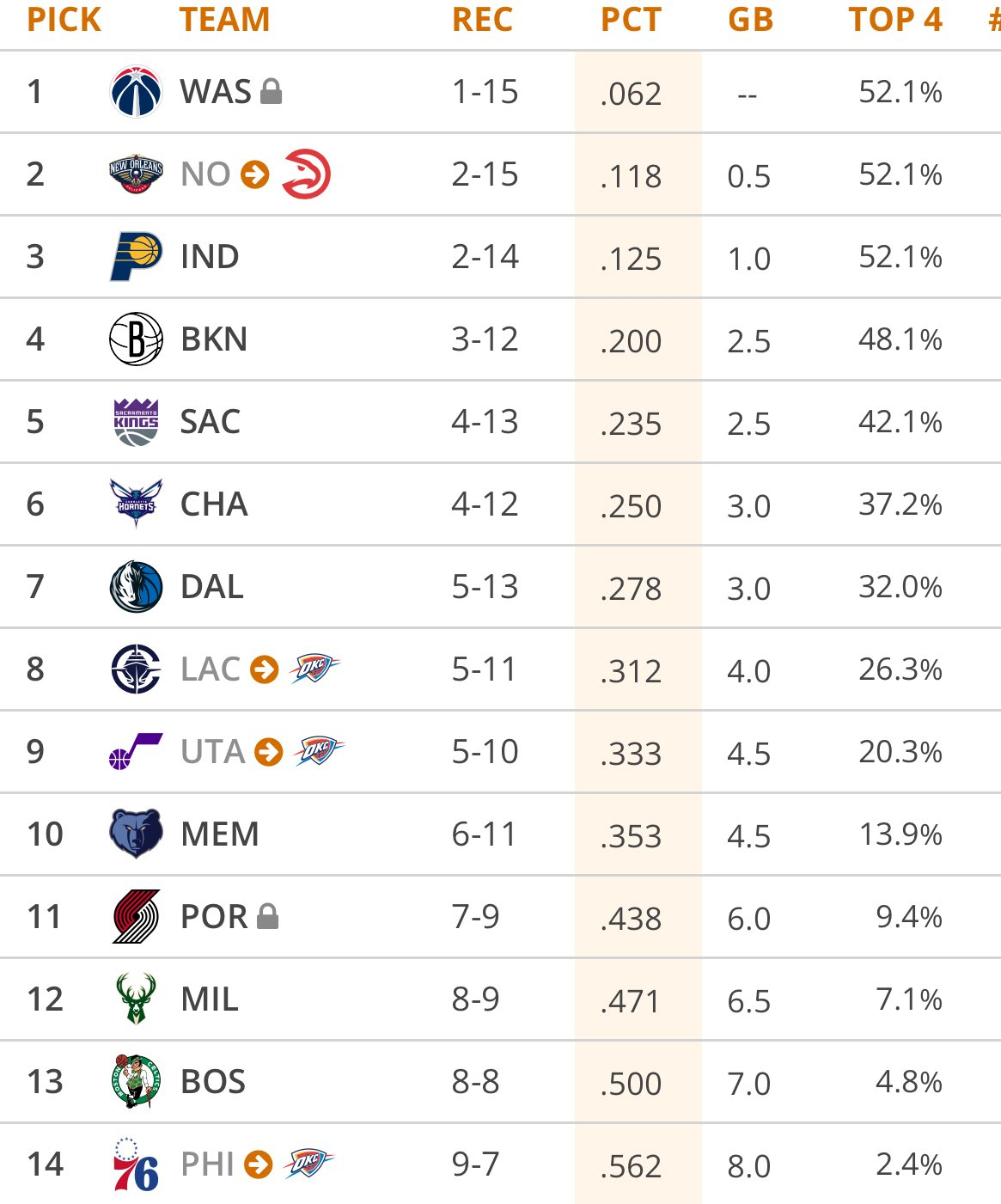 如果本赛季今天结束,雷霆将会有3个乐透签……没法玩儿,根本没法玩儿……