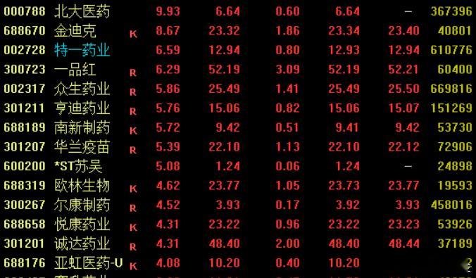 消息面上,据报道,11月以来,京东买药秒送平台的流感类药品成交额环比10月增长明显。其中,解热镇痛类药物订单量增长超4.5倍,速福达成交额增长超过了14倍,达菲、可威的成交额增长幅度都超过了9倍。流感概念快速拉升,北大医药直线涨停,金迪克涨超10%,特一药业触及涨停,众生药业、亨迪药业、华兰疫苗、一品红跟涨。