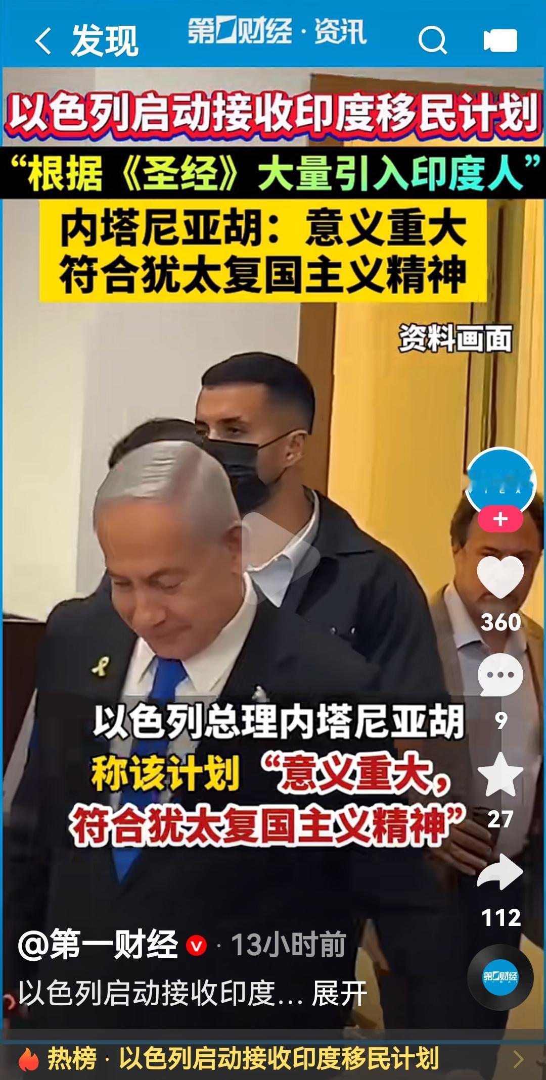 以色列启动接受印度移民计划 根据以色列媒体报道,内塔尼亚胡已经启动接收印度移民计划,以色列政府已经批准内塔尼亚胡的方案,内塔尼亚胡说接受印度移民意义重大,符合犹太复国主义精神 移民的印度人说根据圣经他们就是犹太民族的后裔 三哥这是在找祖宗提高自己智商啊印度移民 印度人移民 印度技术移民 图片来自第一财经视频