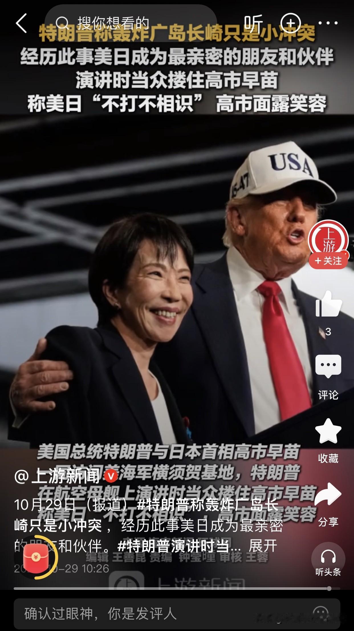 挑衅中国讨好美国?日本陷绝境,中美双线施压难翻身 日本首相高市早苗抛出错误涉台言论,复刻安倍晋三“台湾有事即日本有事”论调,妄图靠挑衅中国讨好美国,却没料到日本已深陷经济困局,中美双线施压下处境愈发艰难,纯属搬起石头砸自己脚。 近期日本金融市场遭遇罕见股债汇三杀,日经225指数单日暴跌3.22%跌破49000点,10年期国债收益率飙升至1.76%创2008年新高,日元兑美元跌破155、兑欧元跌至180。日本债务率高达GDP的250%,每4日元税收就有1日元用于还债付息,三季度GDP年化下降1.8%,时隔一年半再度萎缩,经济根基持续松动。 高市早苗本想借对华挑衅转移国内矛盾,反倒让日本雪上加霜,水产、旅游、汽车产业接连受挫。其推出的21.3万亿日元经济刺激计划,超17万亿需靠发债融资,叠加给议员涨薪,引发民众强烈不满,遭斥向国民宣战。更打脸的是,美国并未买账,特朗普更侧重对华关系,还靠关税政策施压日本,导致日本经济萎缩,需向美缴纳4000亿美元。日本央行陷入两难,加息则债务利息爆炸、企业破产,不加息则日元崩盘、通胀失控。中国在产业端挤压日本,美国在关税上压榨日本,趁势拿捏困境中的日本,高市早苗的挑衅不过是赌国运的最后疯狂,终究难掩日本颓势。