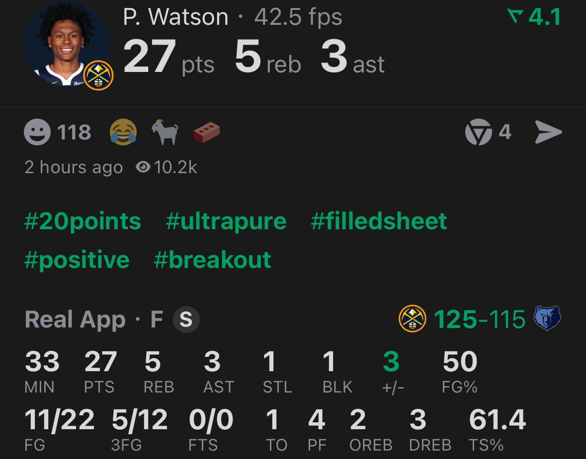 沃特森27分,三分12中5(出手生涯新高,命中平最高),过去4战3场15+,期间三分26中13。另外卡约已经悄悄的近5战4次得分上双,期间三分23中14了。