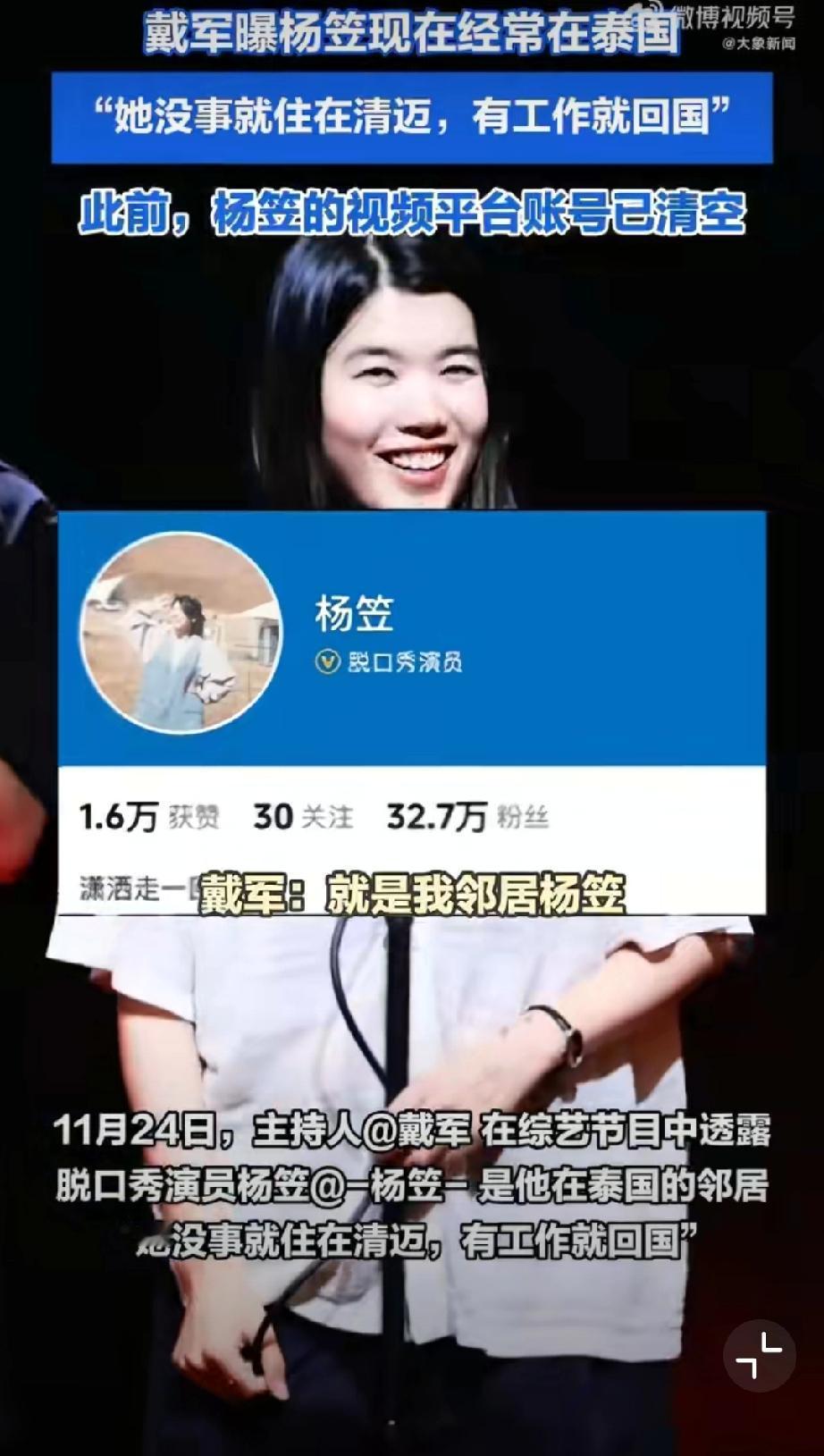 原来杨笠常驻泰国了啊。 我还以为她进体制内了呢。 [撇嘴][撇嘴][撇嘴]杨