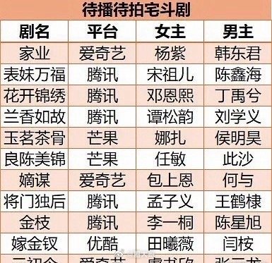 2026将是宅斗剧的修罗场。网友整理了待播待拍宅斗剧的名单。杨紫家业、宋祖儿表妹