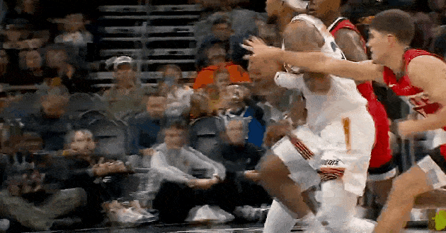 排球大帽!阿门你是真能跳啊! 在今天NAB常规赛火箭对阵太阳的第三节比赛中,古德温抢断后欲完成反击上篮得分,阿门汤普森高高跃起送上排球大帽! 从慢镜头回放来看,阿门这球跳的比古德温要晚不少,但他瞬间就弹至制高点!这弹速着实夸张!