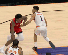 阿门复制詹姆斯经典时刻,“背着”布克打成2+1 北京时间11月25日,火箭与太阳的比赛来到第3节10分30秒,阿门复制了詹姆斯经典时刻,“背着”布克打成2+1。 图一:火箭进攻,阿门一步过掉布克,后者从背后搂头盖脸试图将阿门拉下来,结果,阿门在倒地时还是将球送进篮筐,2+1,而由于布克的动作已经超出篮球范畴,被追加为一级恶意犯规。 图一:而这一幕像极了当年詹姆斯背着莫里斯打进2+1的画面。