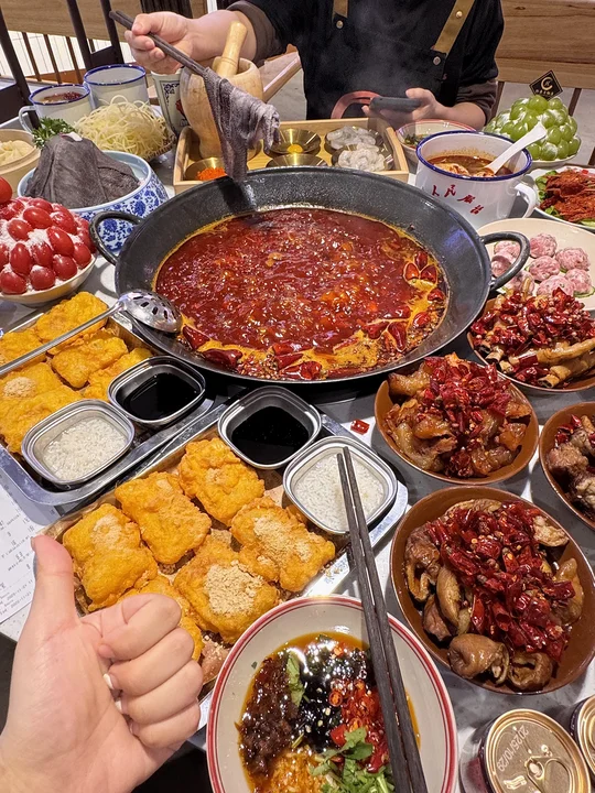 虹口区!!和朋友5天吃了3次…尊嘟太好吃了!! 我心中上海重庆老火锅之神!!耙耙卤菜、川渝小吃、手工菜、鲜货菜…各种菜品划算又好吃! 强推他家的牛油全红锅!越煮越香不会发苦 真的涮鞋底都好吃😭耙鸡爪卤香入味一抿脱骨!还有牛肉、蹄筋、芋儿、肥肠…煮得吸满汤汁!真的和我在重庆旅游吃到的一模一样! 我们还点了手锤虾滑、蛋煎糍粑、非遗滑肉…全都没有踩雷!喜欢这口的姐妹一定要来试试!真心吊打那些网红店! 店名叫📍红亮老火锅)