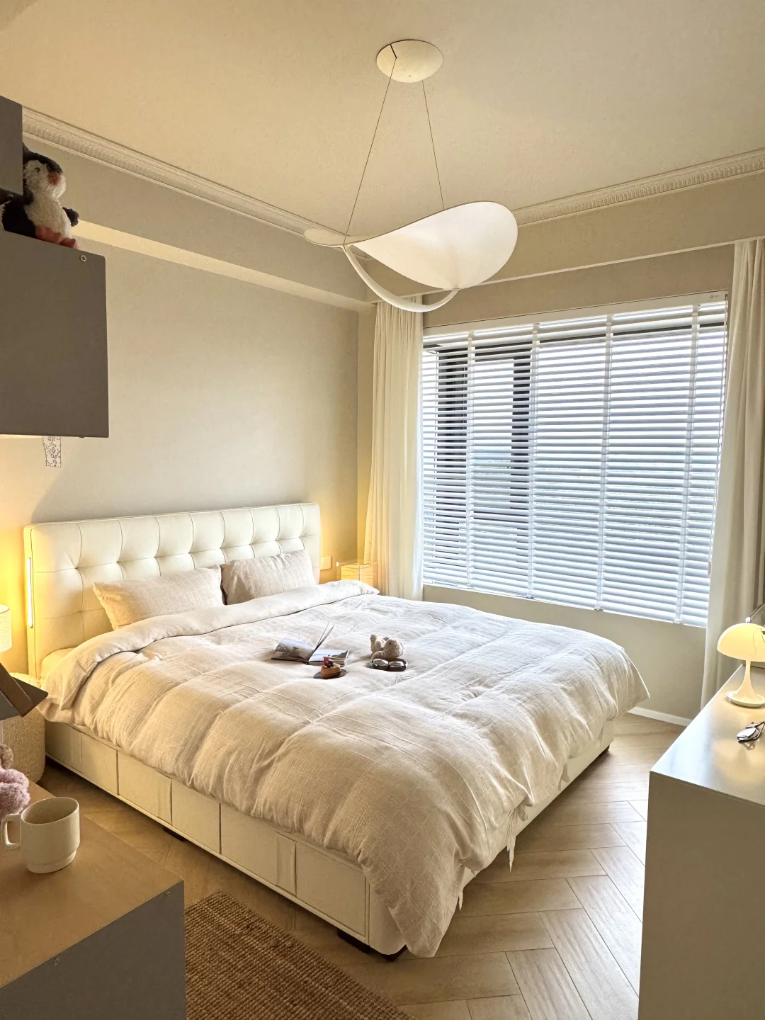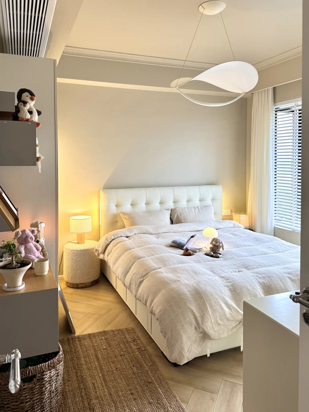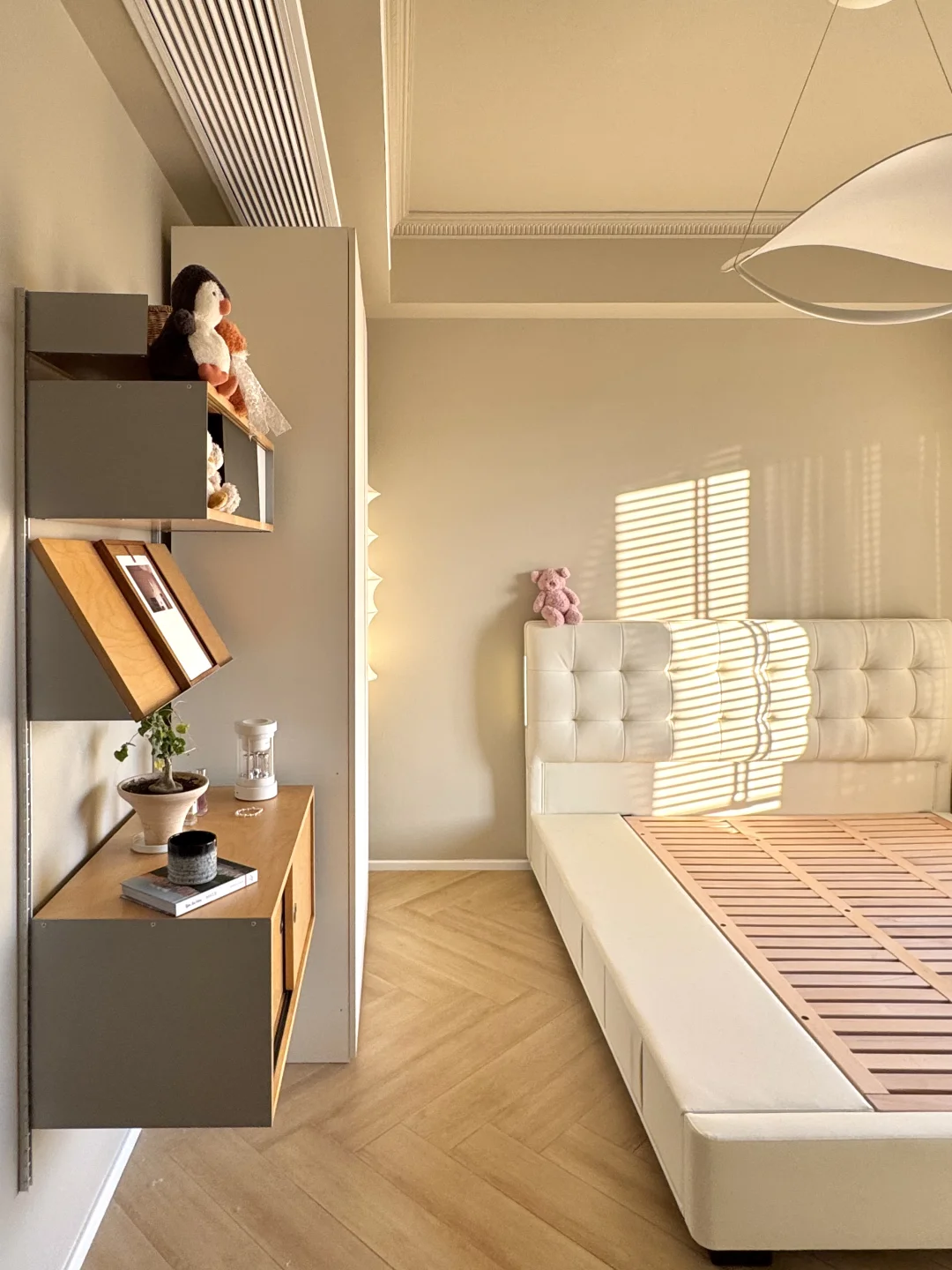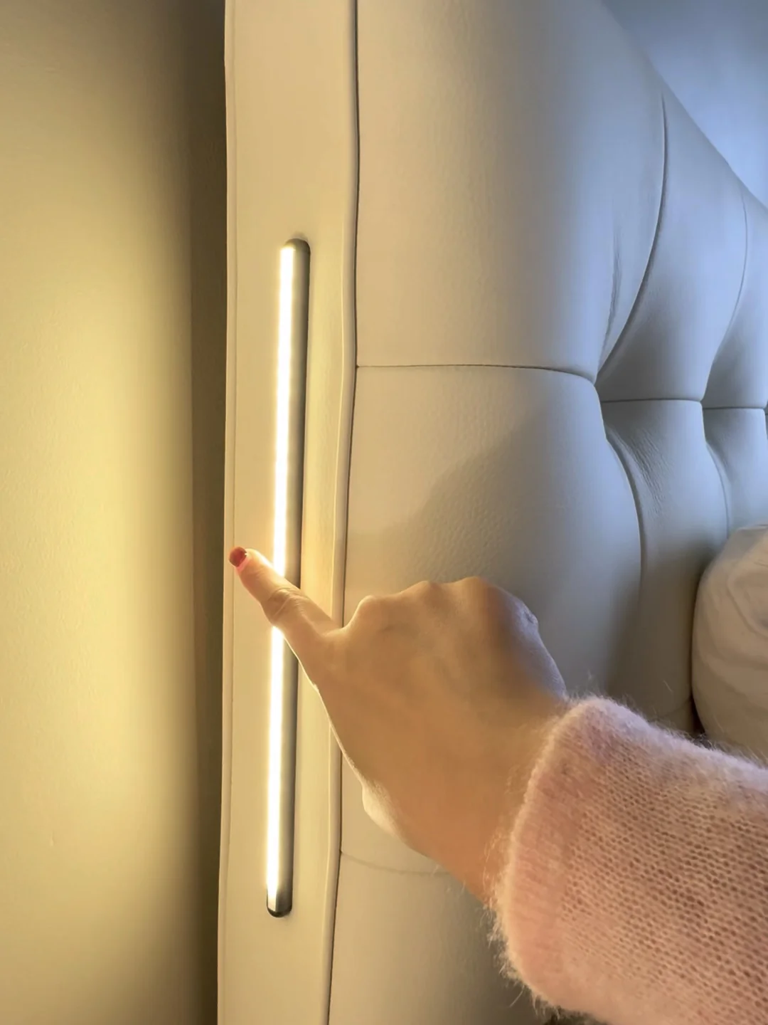 华夫格软包床头质感细腻,床头两侧升级了自带的小夜灯,睡前哄宝宝睡觉也方便,灯光柔和不刺眼,亮度还可以自由调节,真的好适合有娃家庭,一举两得啊!浅色系和我家极简原木风超搭,摆在卧室温柔又高级,摸起来软乎乎的,宝宝偶尔靠坐、玩耍也不担心磕碰。