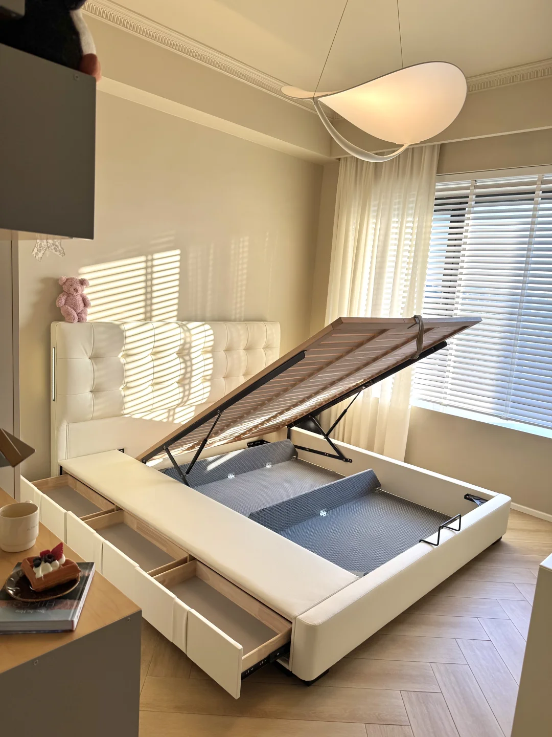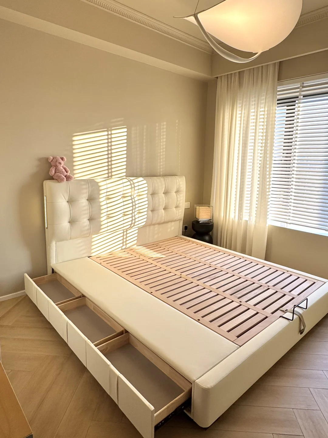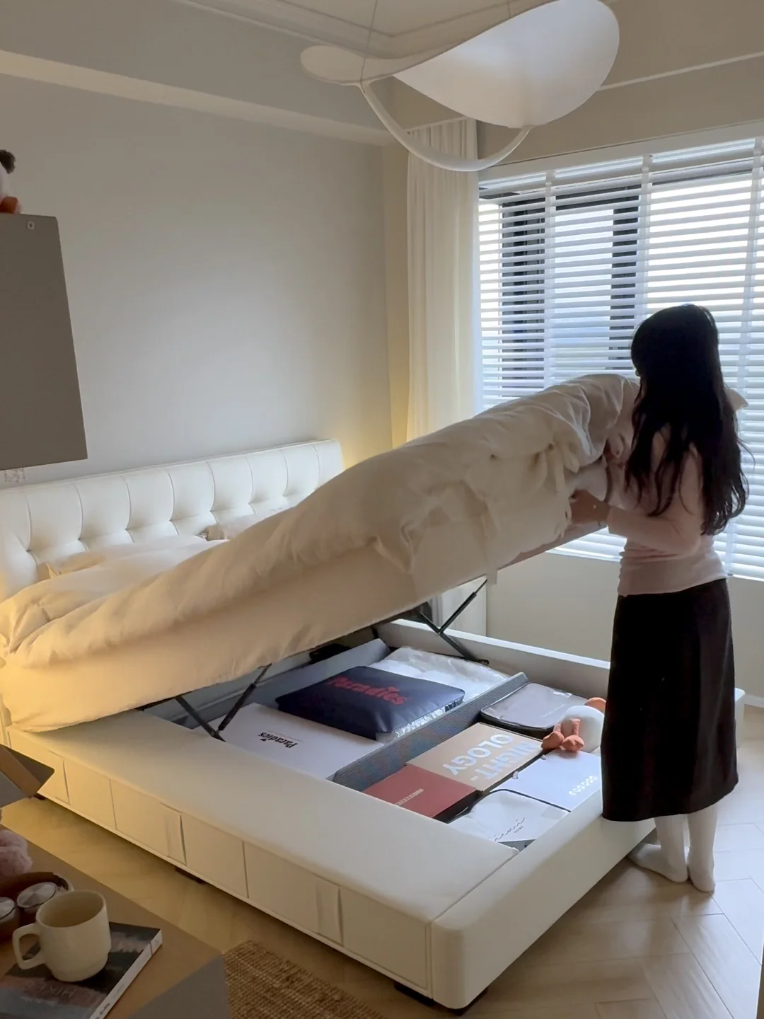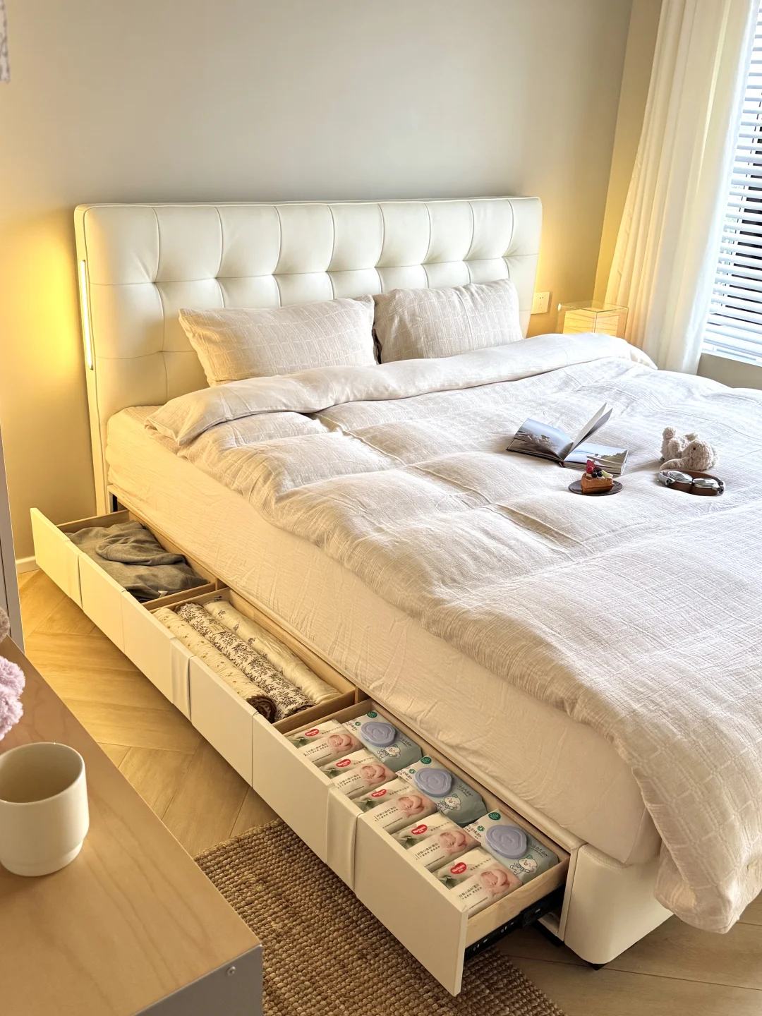 抱着试试的心态网购了卡得利升级版的华夫格真皮储物床,没想到直接解决了我的收纳焦虑!
