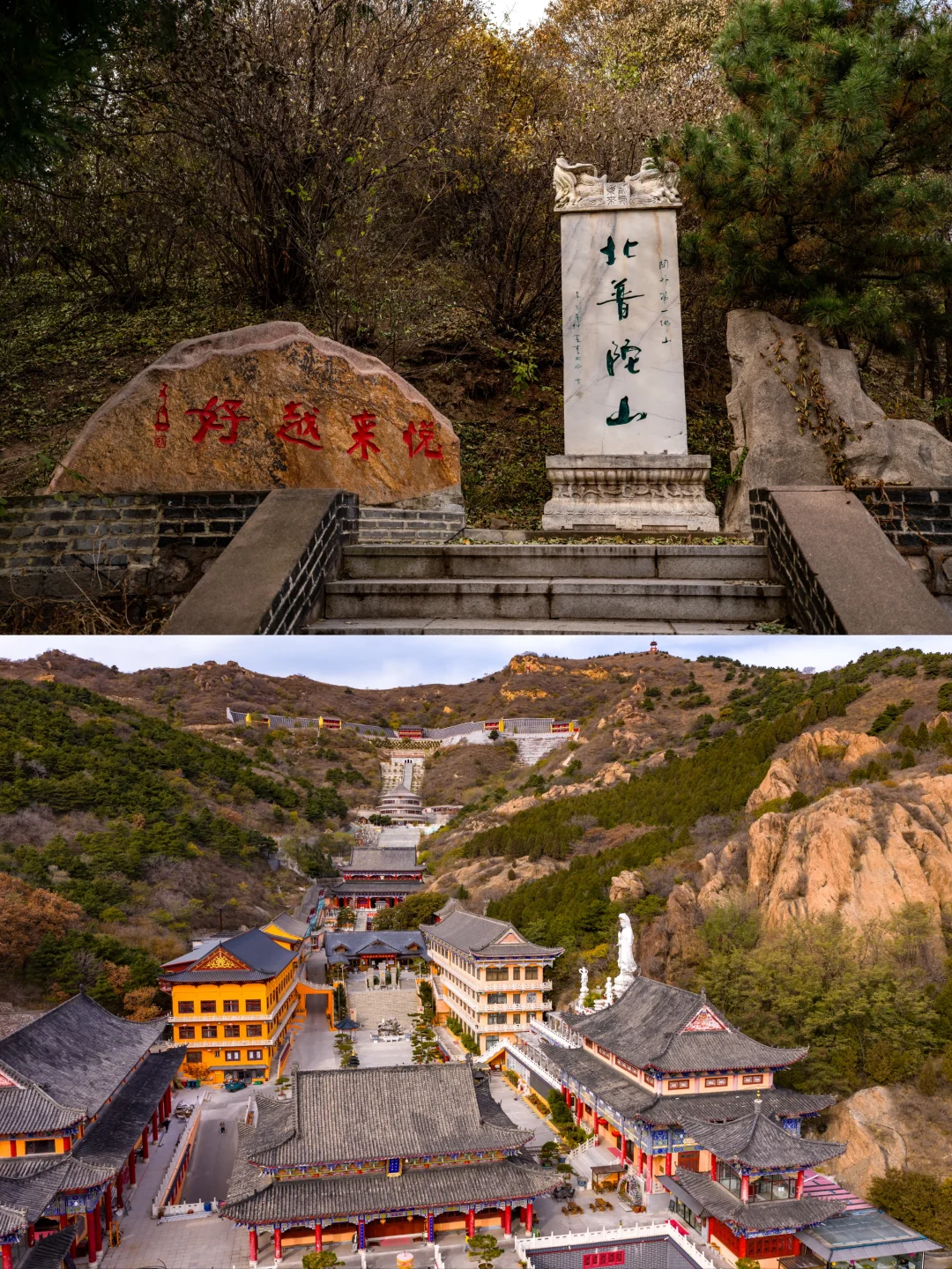 ✅️北普陀山:“关外第一佛山”名不虚传!晨雾缠著古寺飞檐,石阶旁草木带著山野清润,不用赶行程,拾级而上听风穿林、闻钟鸣山幽,登顶俯瞰整座锦州城,光影都变得温柔~