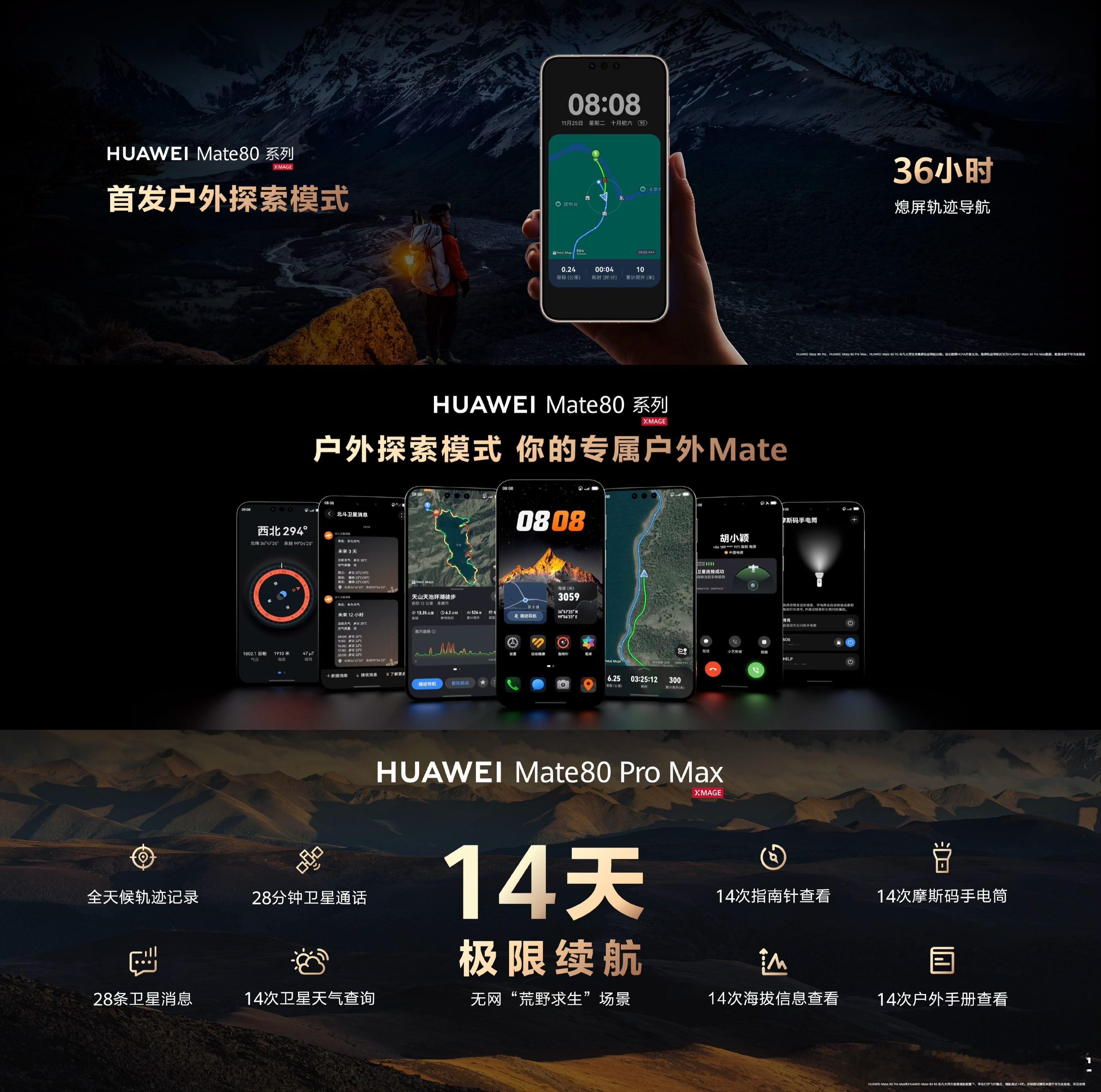 发布会大家看了吗,这次华为Mate 80系列的户外属性直接拉满!不仅有超透亮灵珑屏,强光下也能看清屏幕而且细节更丰富。还首发户外探索模式,支持36小时息屏轨迹导航,全天候轨迹记录,天网、地网、无网全程保障,关键时刻不掉链子。即便是户外徒步遇到信号盲区,“两步路”无网也能精准导航。最重要的是14天!要知道在户外,多一分连接就多一分安全。全天候在线,是真安心。