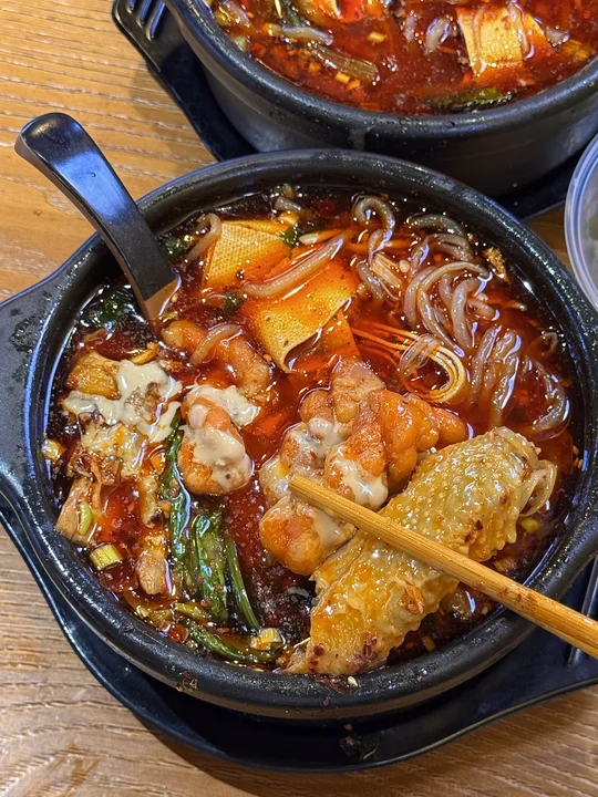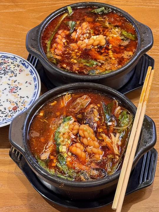 每次去滨江都直奔这家!值得我坐15站地铁去吃😭 我愿称之为杭州最伟大的砂锅!料和汤是一起用砂锅煮出来的 所以超入味!再淋上一层麻酱…闭眼点都好吃的程度! 还有明火辣子烤肉!包烤饼也是一绝!炸宽粉、酒酿醪糟牛奶...真的是我会再去n刷的一家苍蝇馆子!